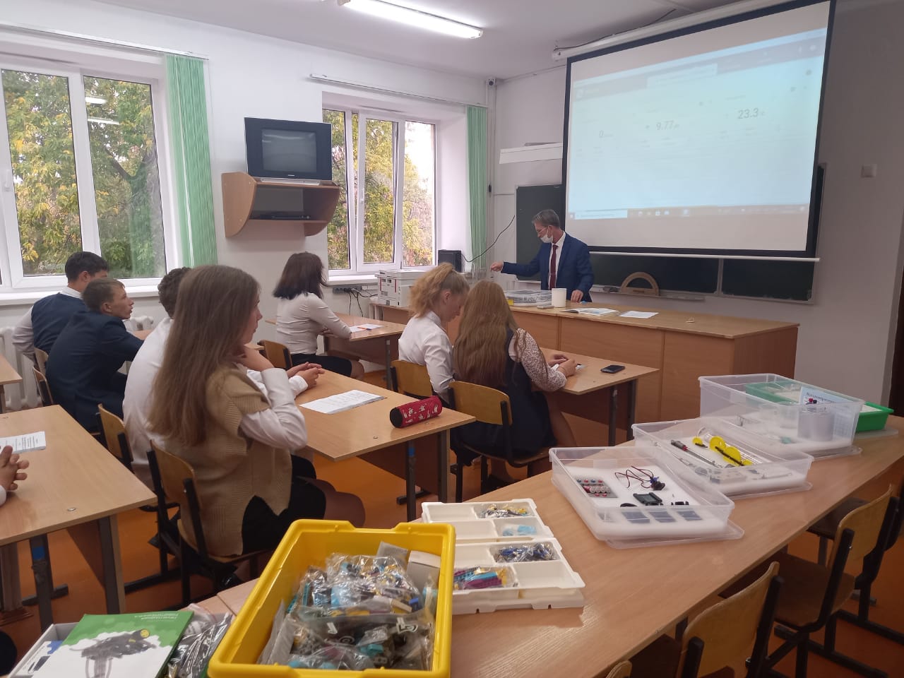 В своем выступлении директор школы Малинин С.А. отметил, что «Центр «Точка Роста» важен для развития общекультурных ценностей, проектной деятельности, творческой социальной самореализации детей, педагогов и должен обеспечивать формирование современных компетенций и навыков у школьников. В Центре планируется реализация не только общеобразовательных программ по предметам «Физика», «Химия», «Биология» с обновленным содержанием и материально-технической базой, но и внеурочной деятельности.