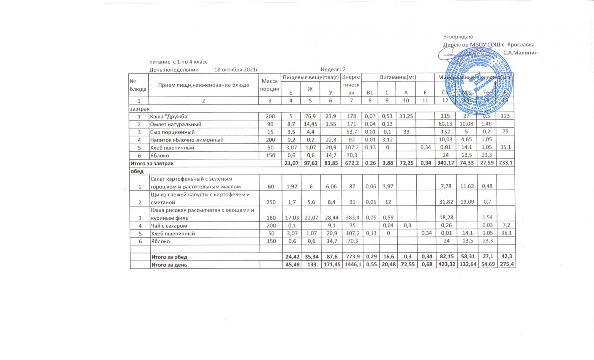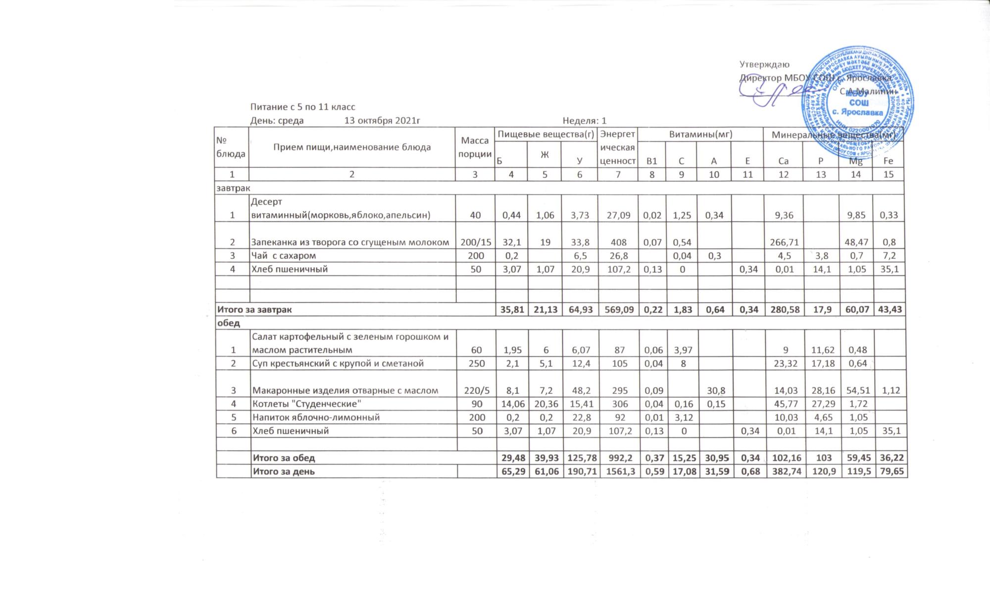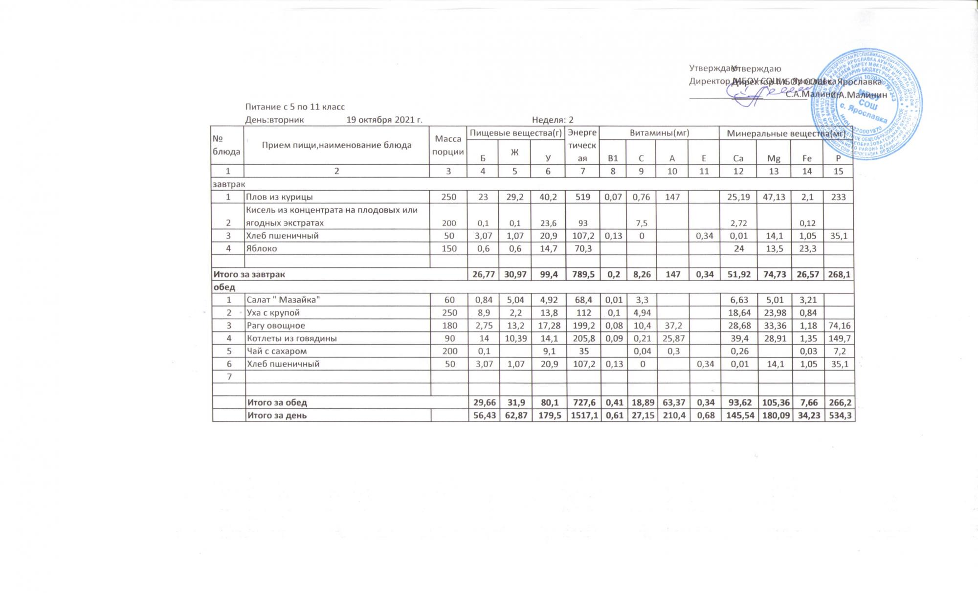 Утвержденные 10-дневные меню