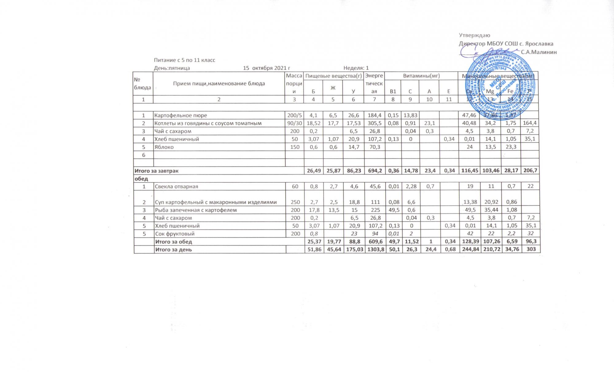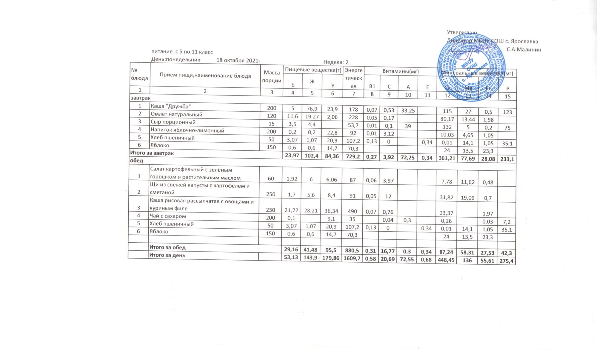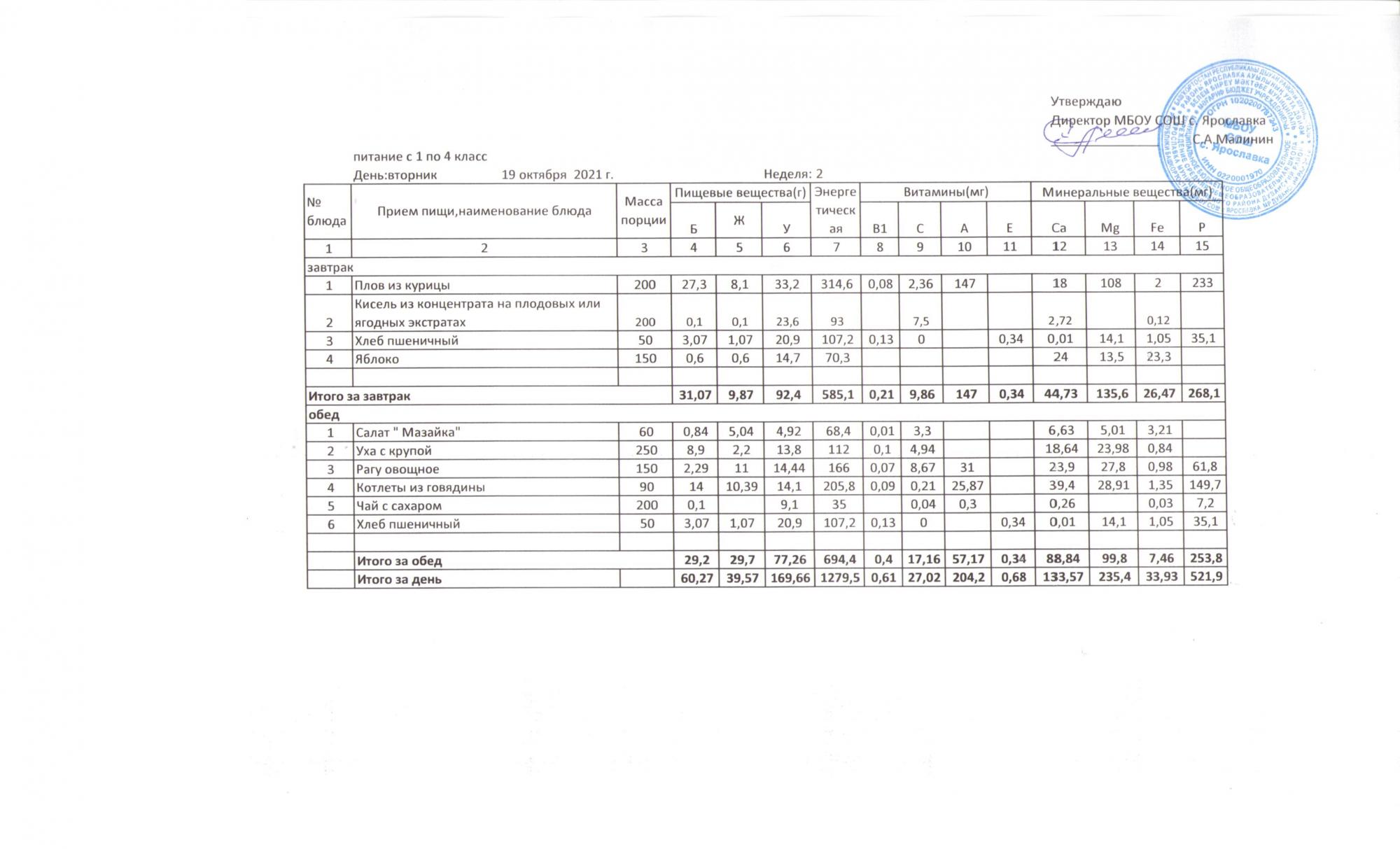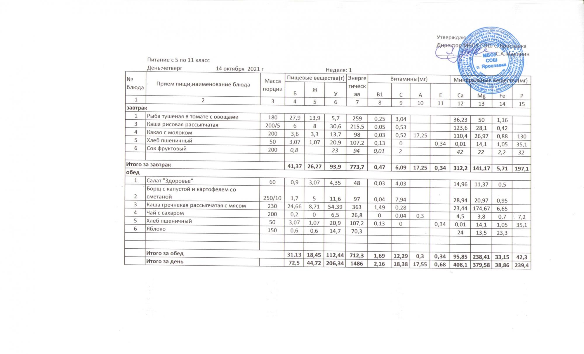Утвержденные 10-дневные меню
