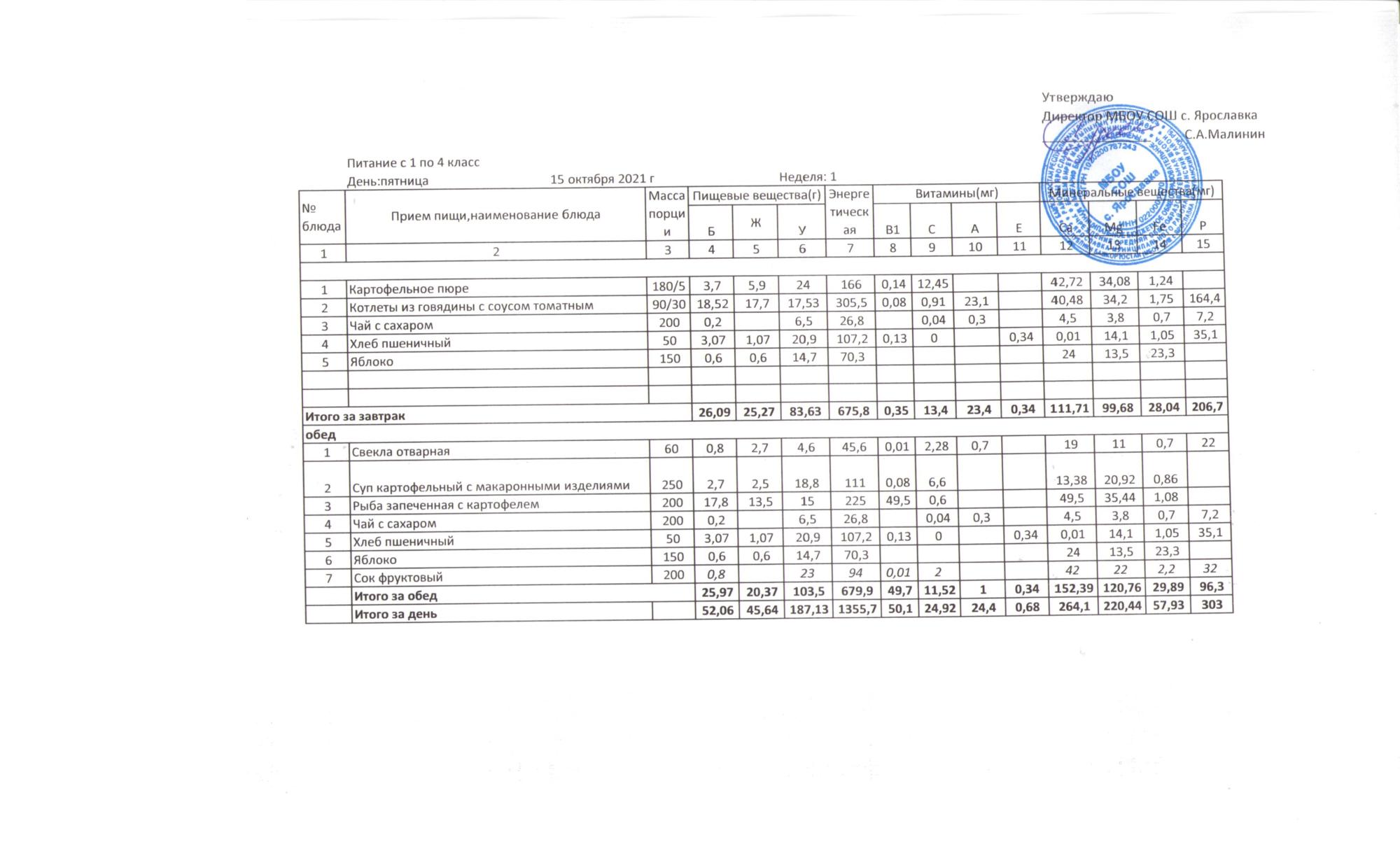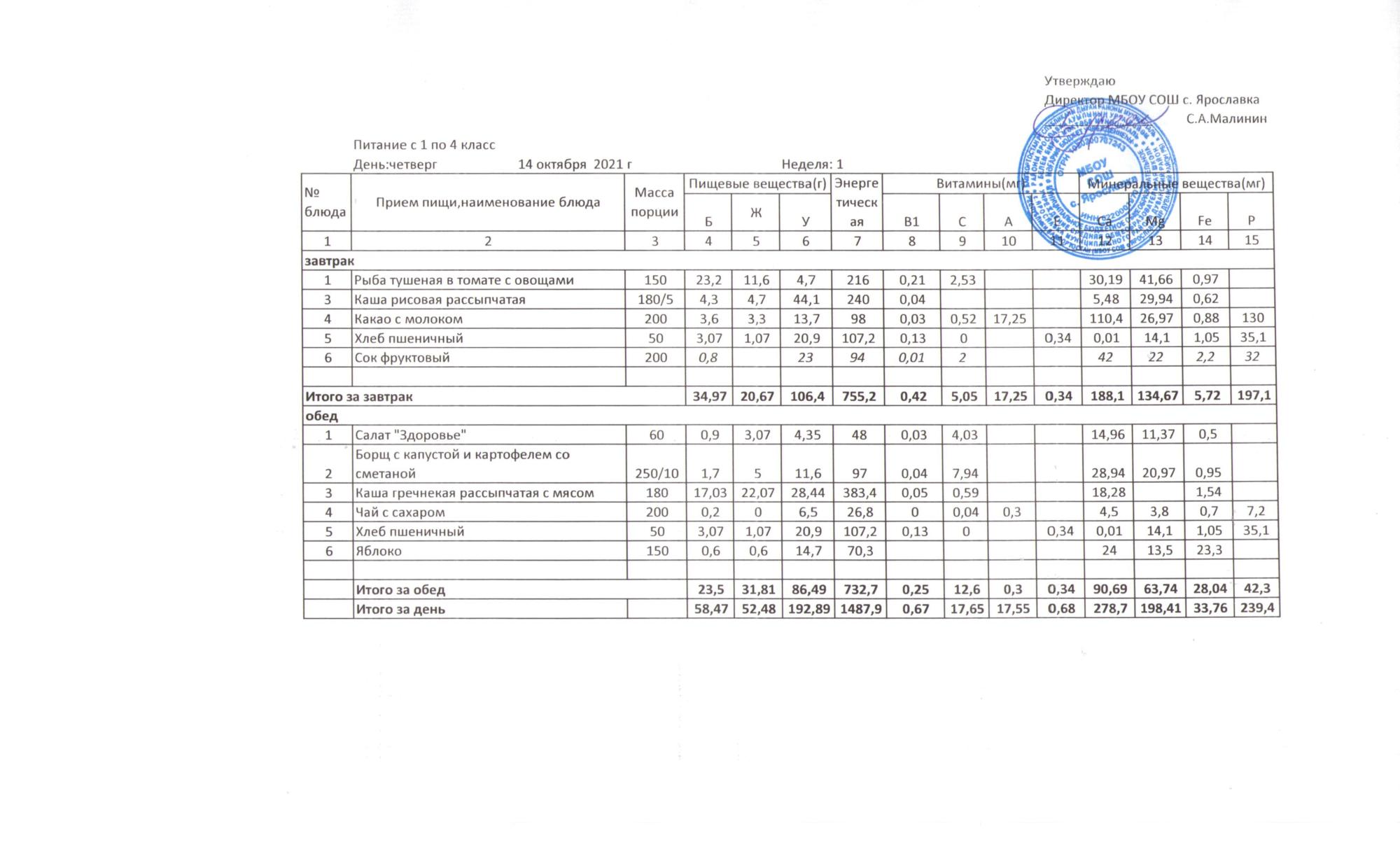 (Меню 1-4 кл.)