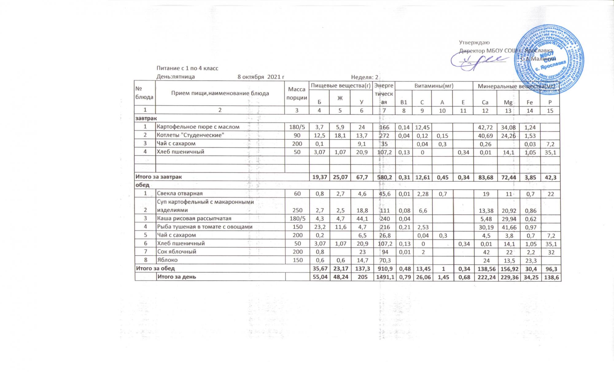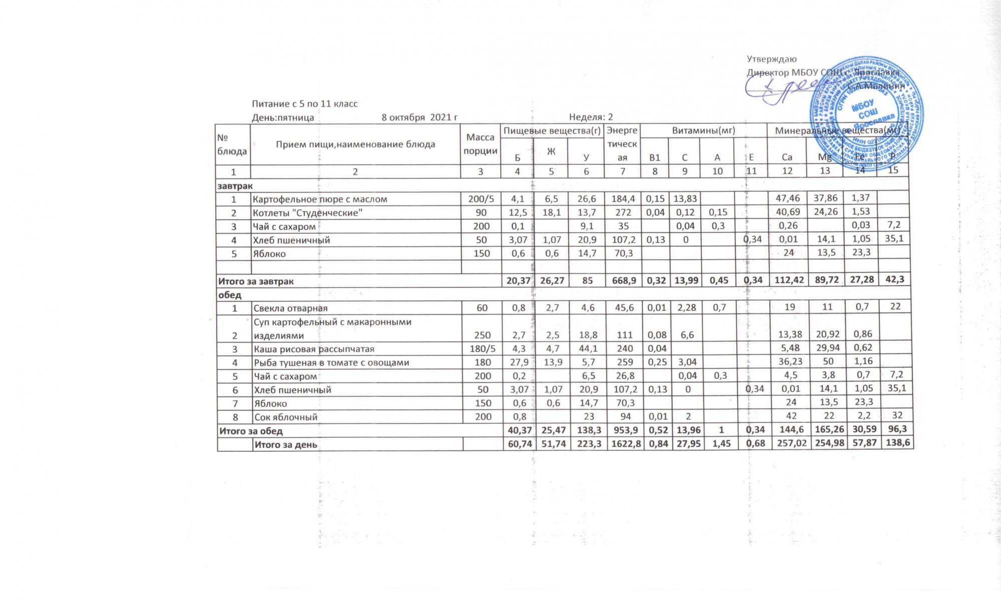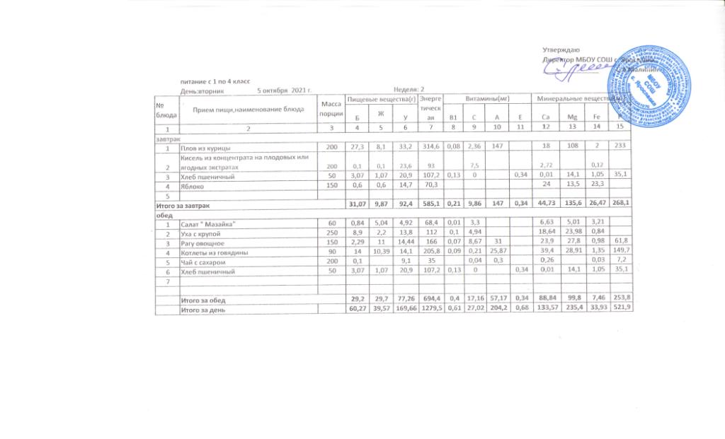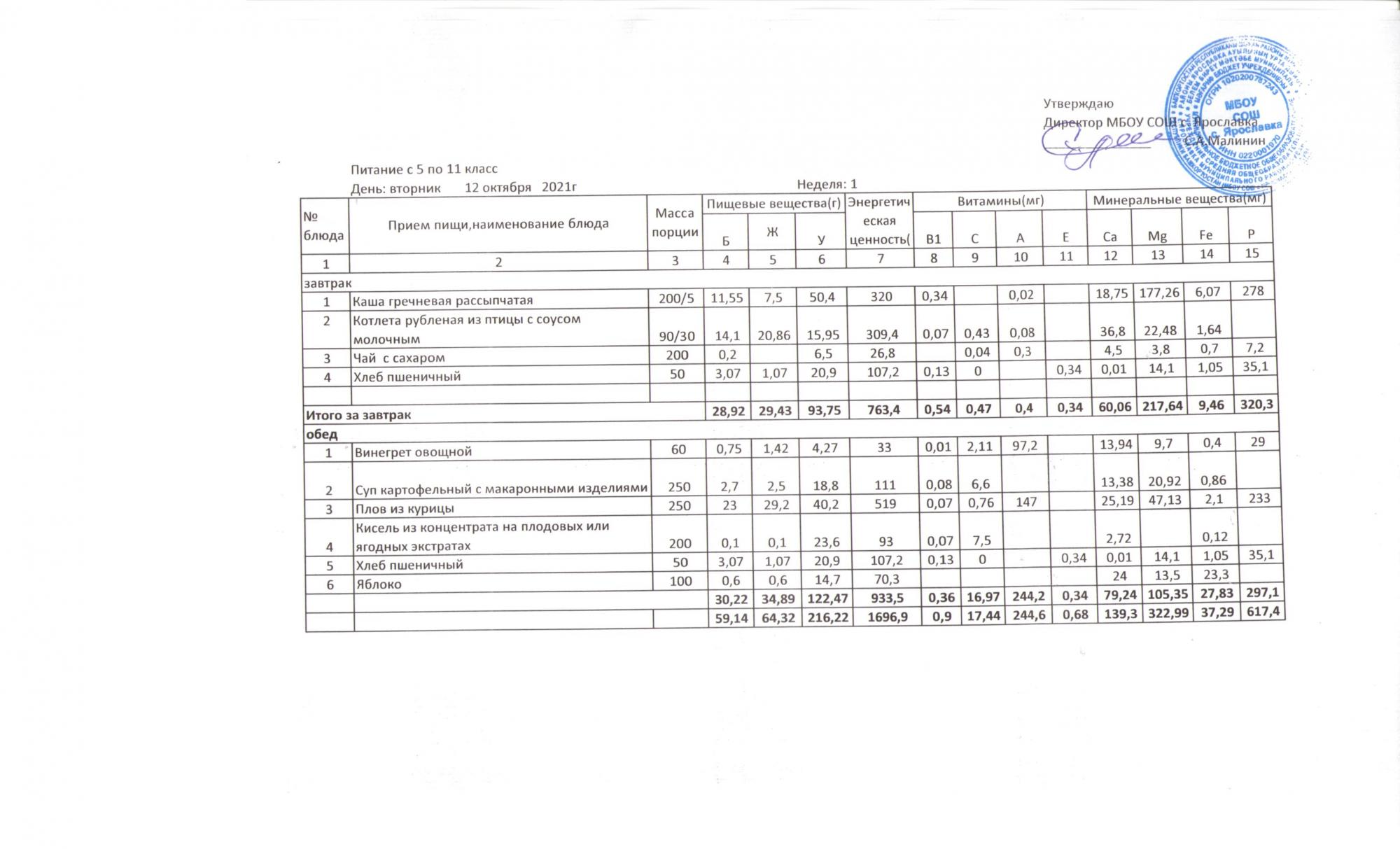Утвержденные 10-дневные меню
