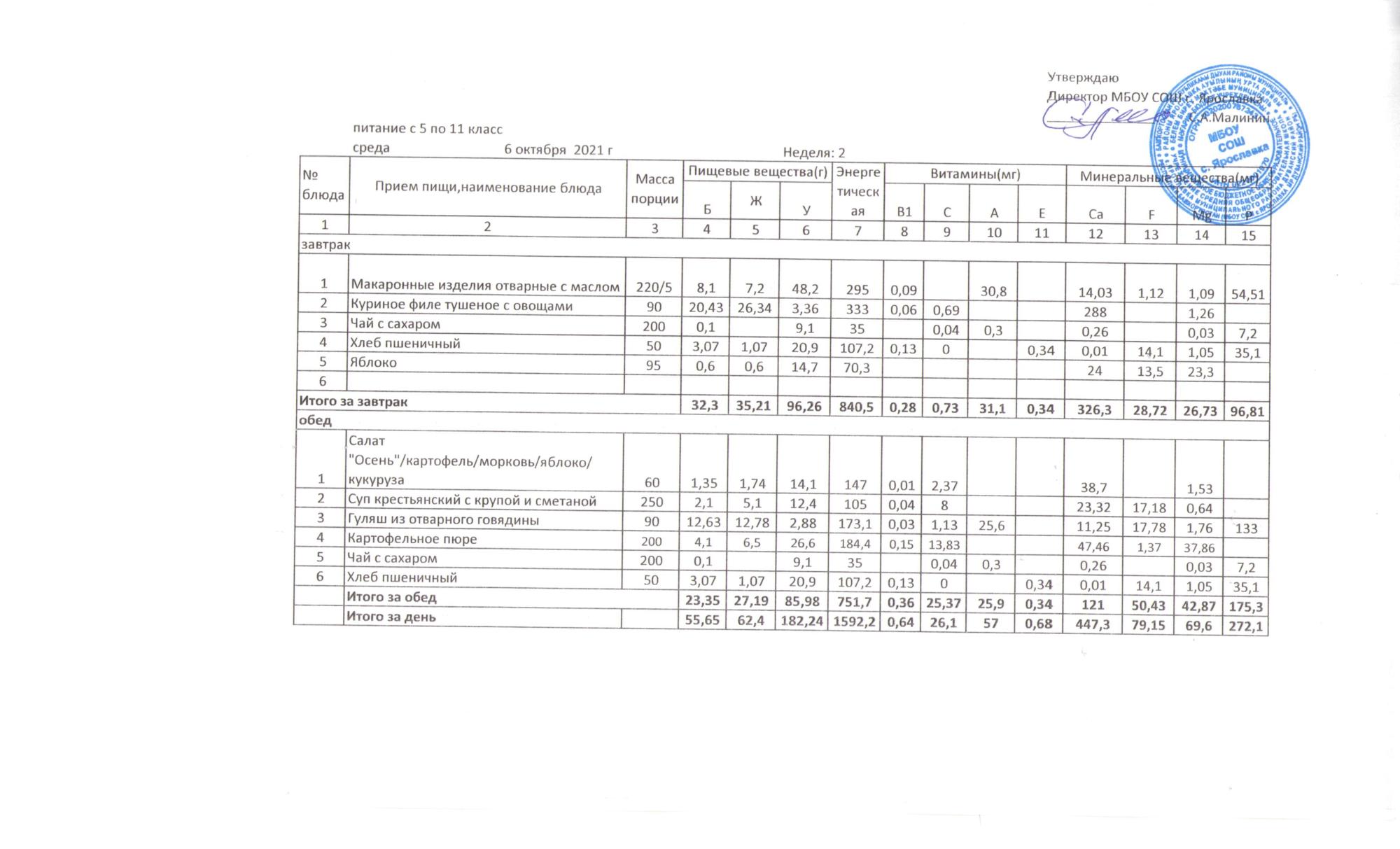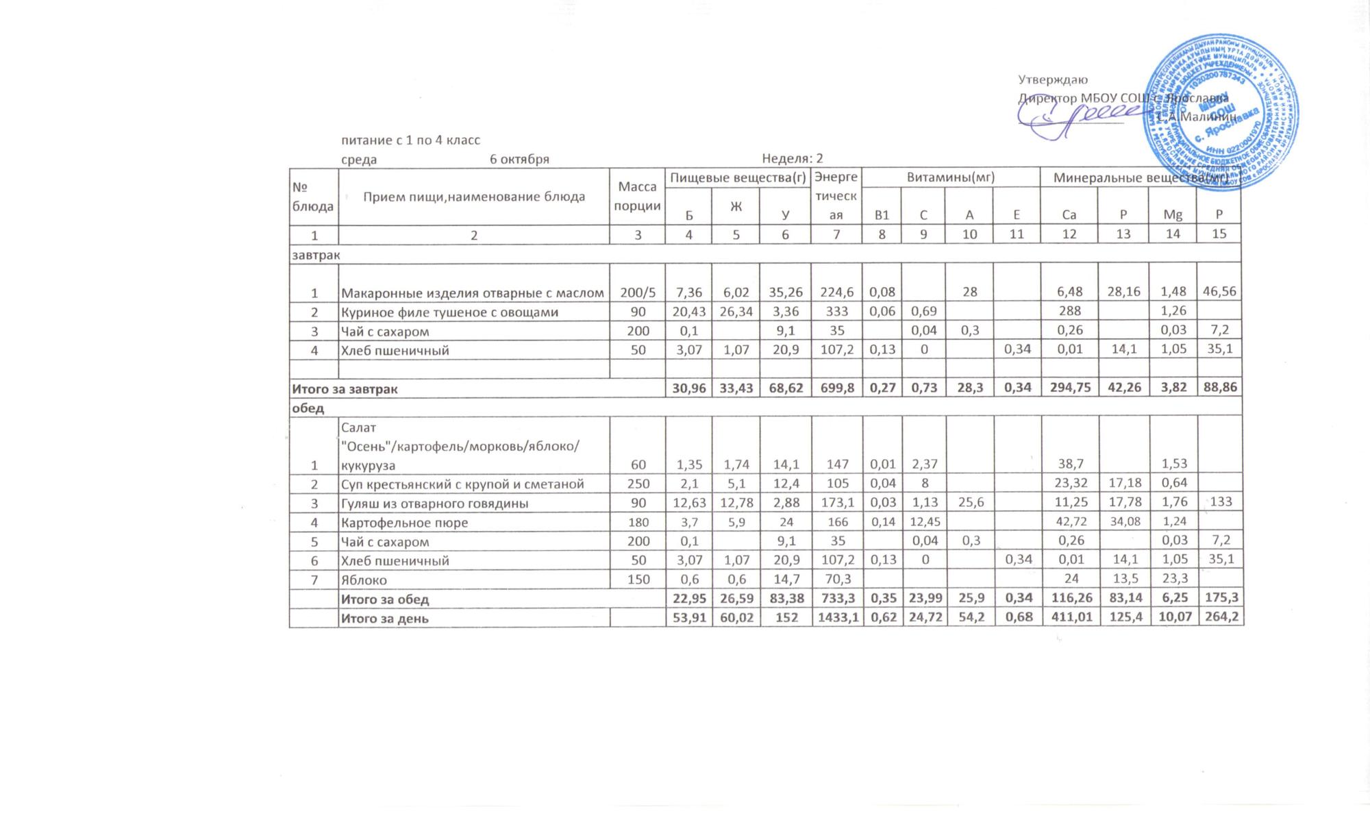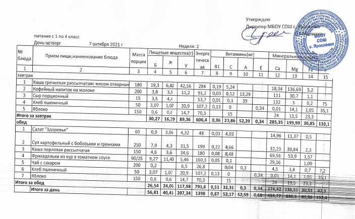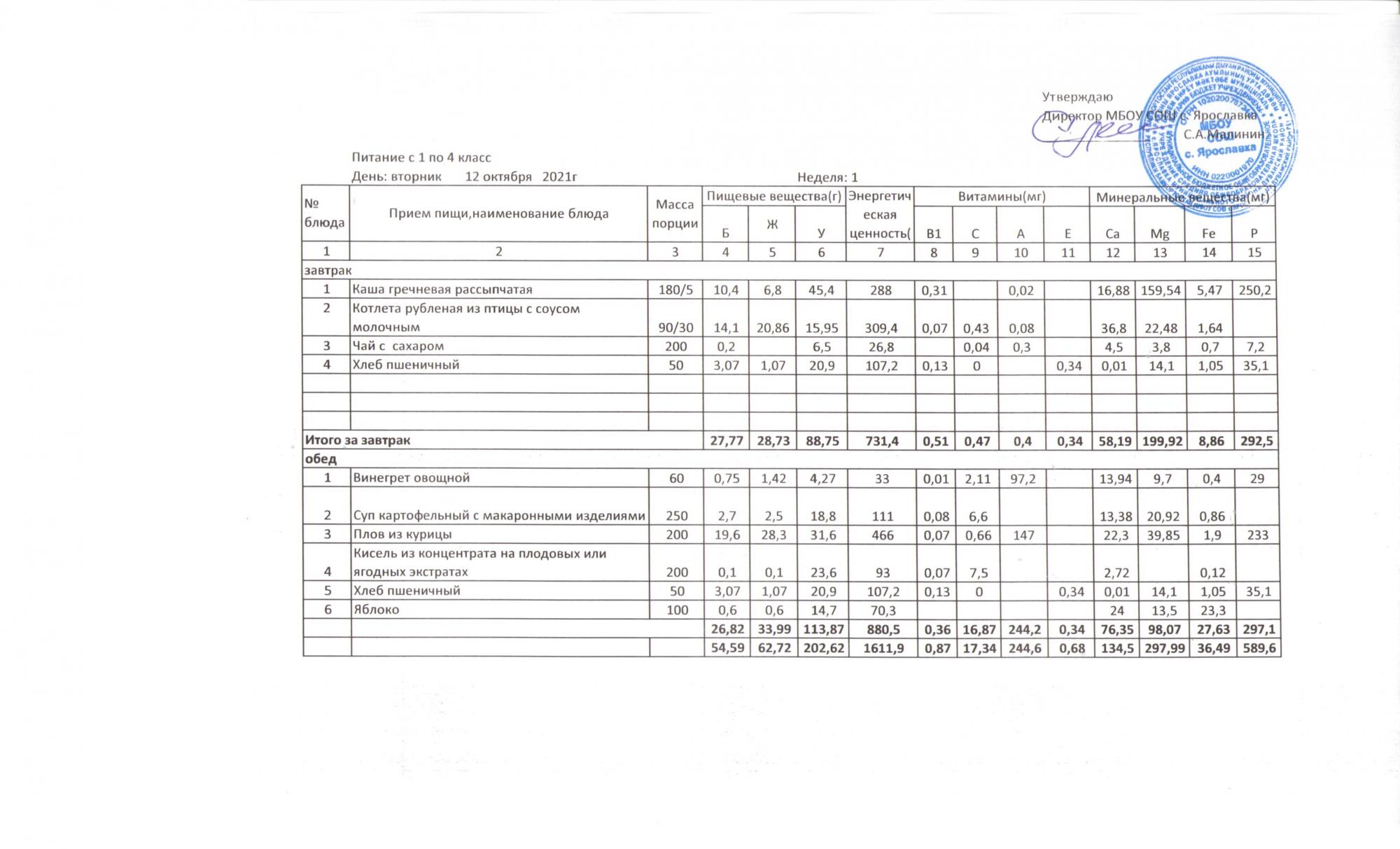 Утвержденные 10-дневные меню