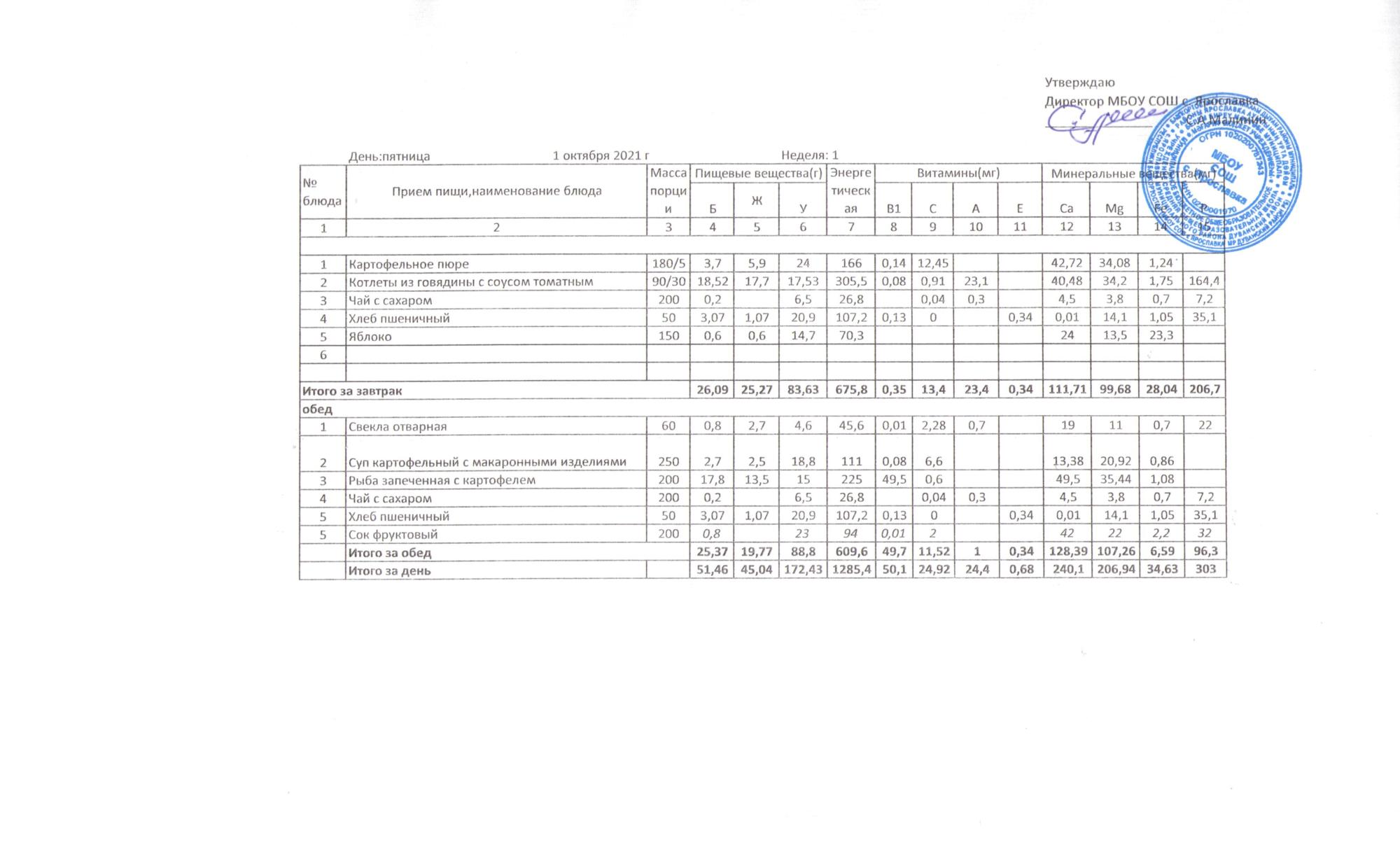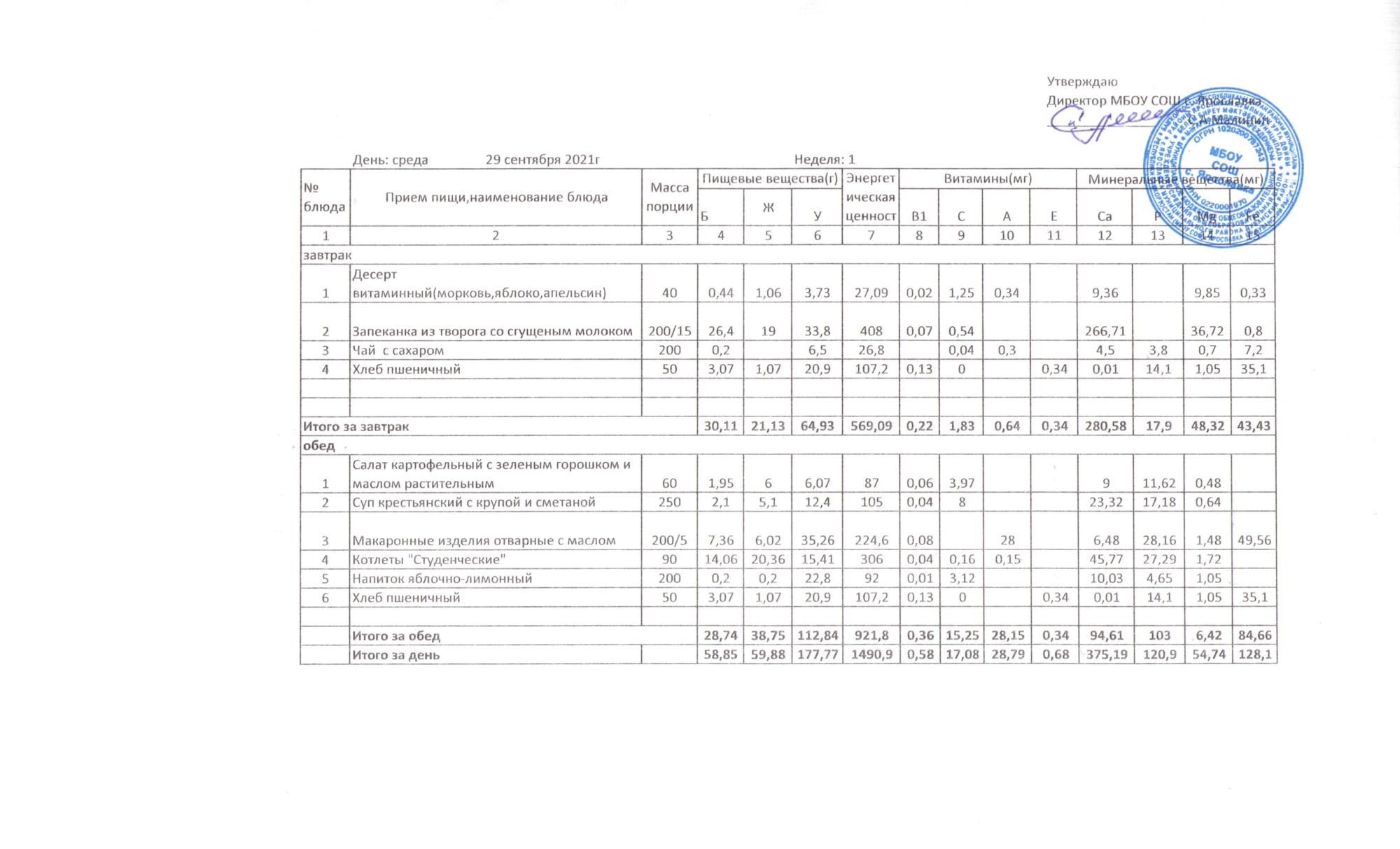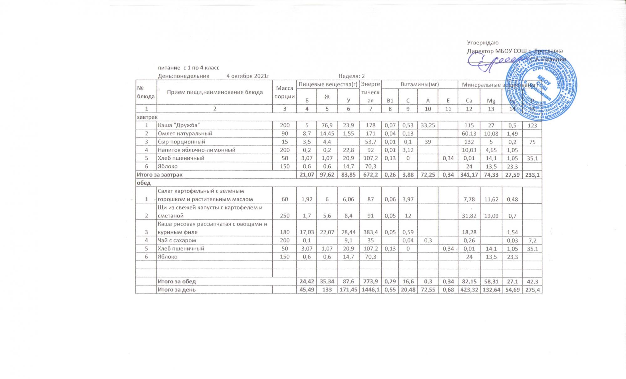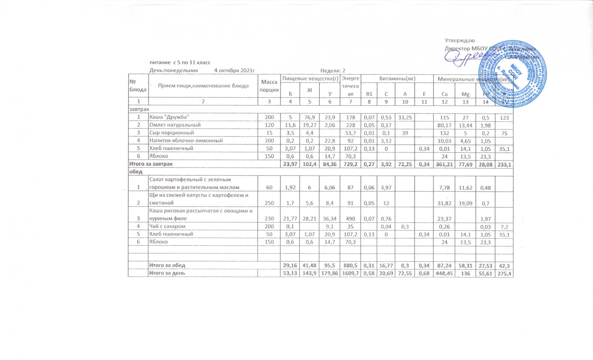 Утвержденные 10-дневные меню