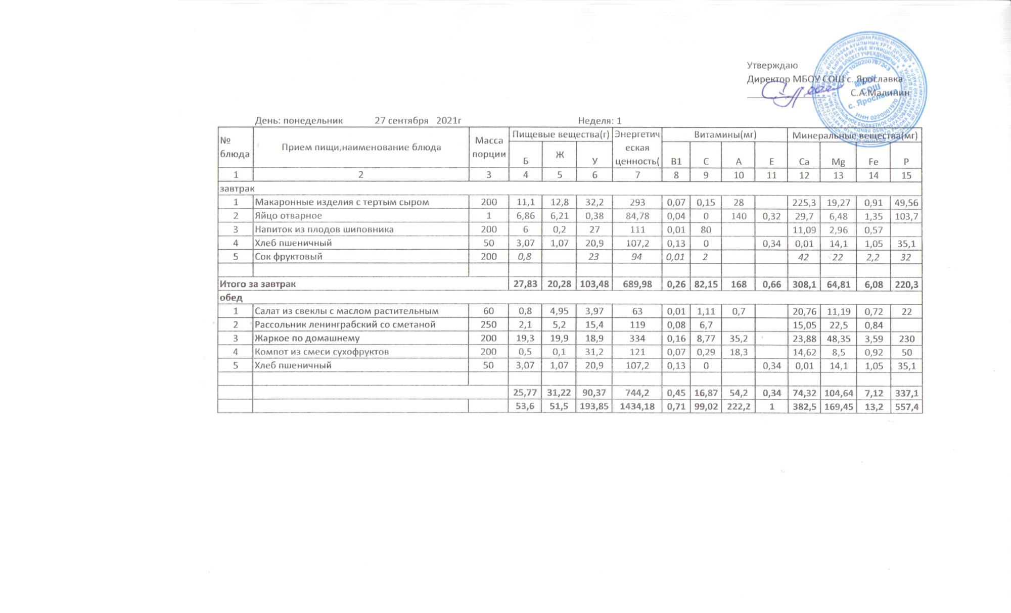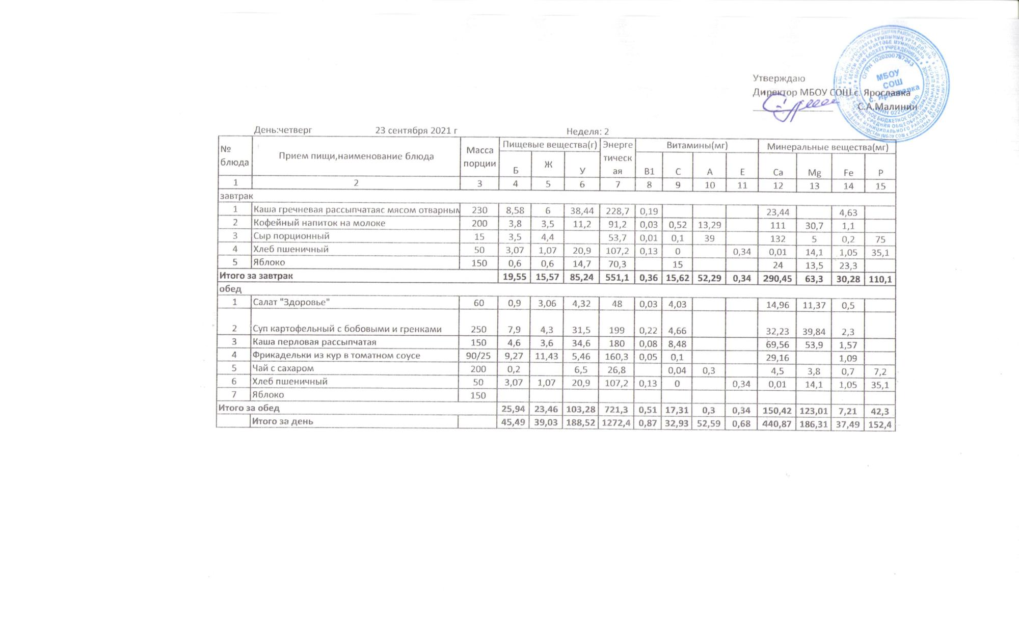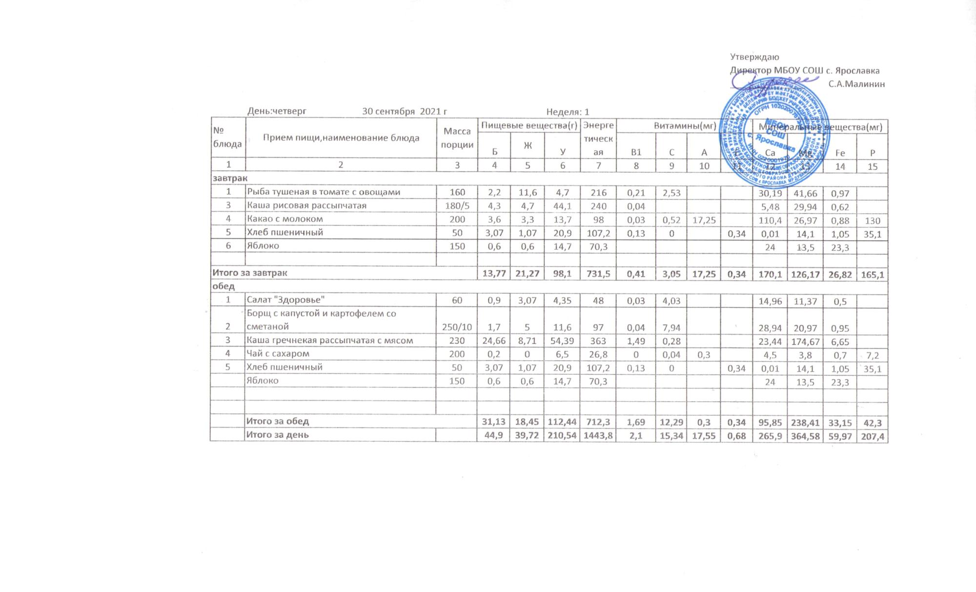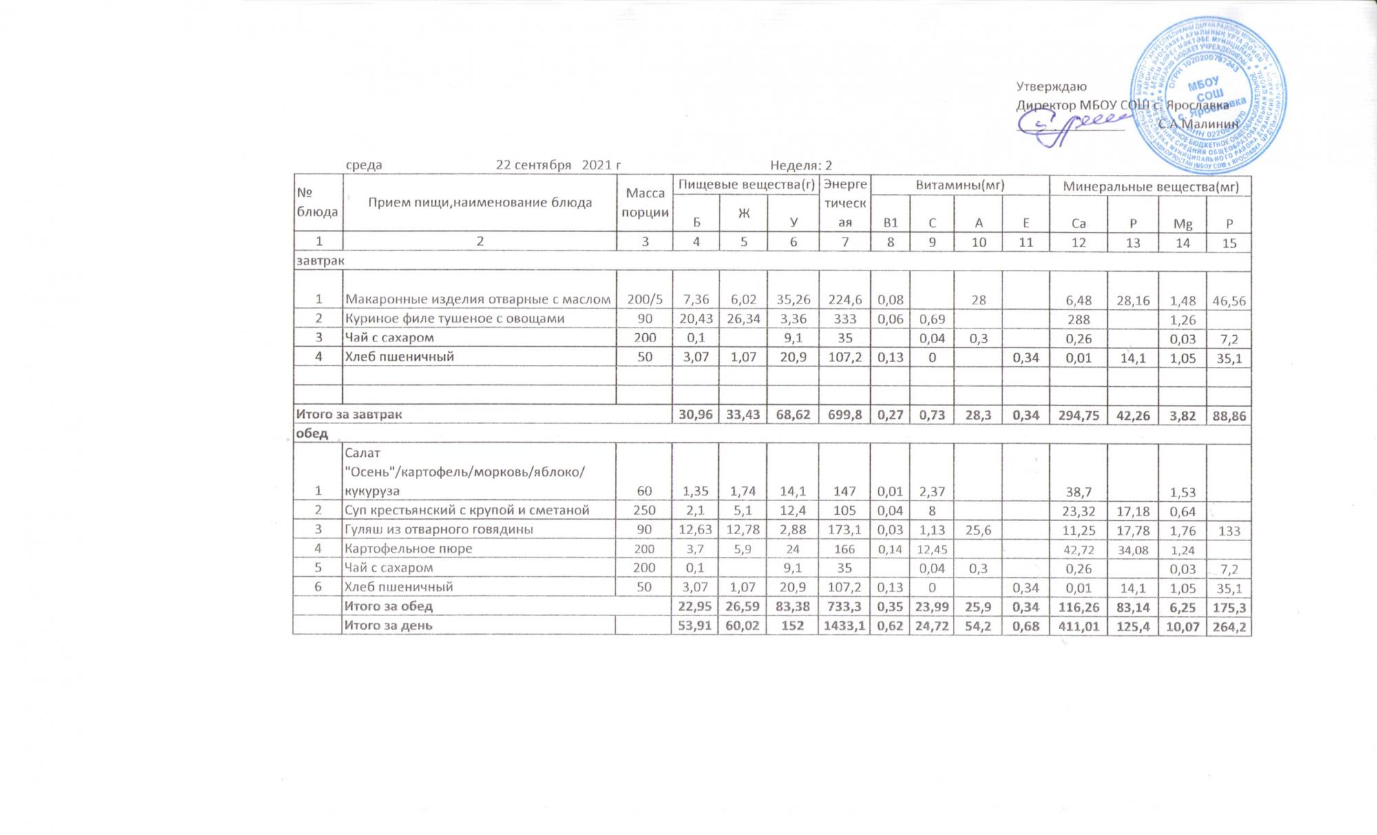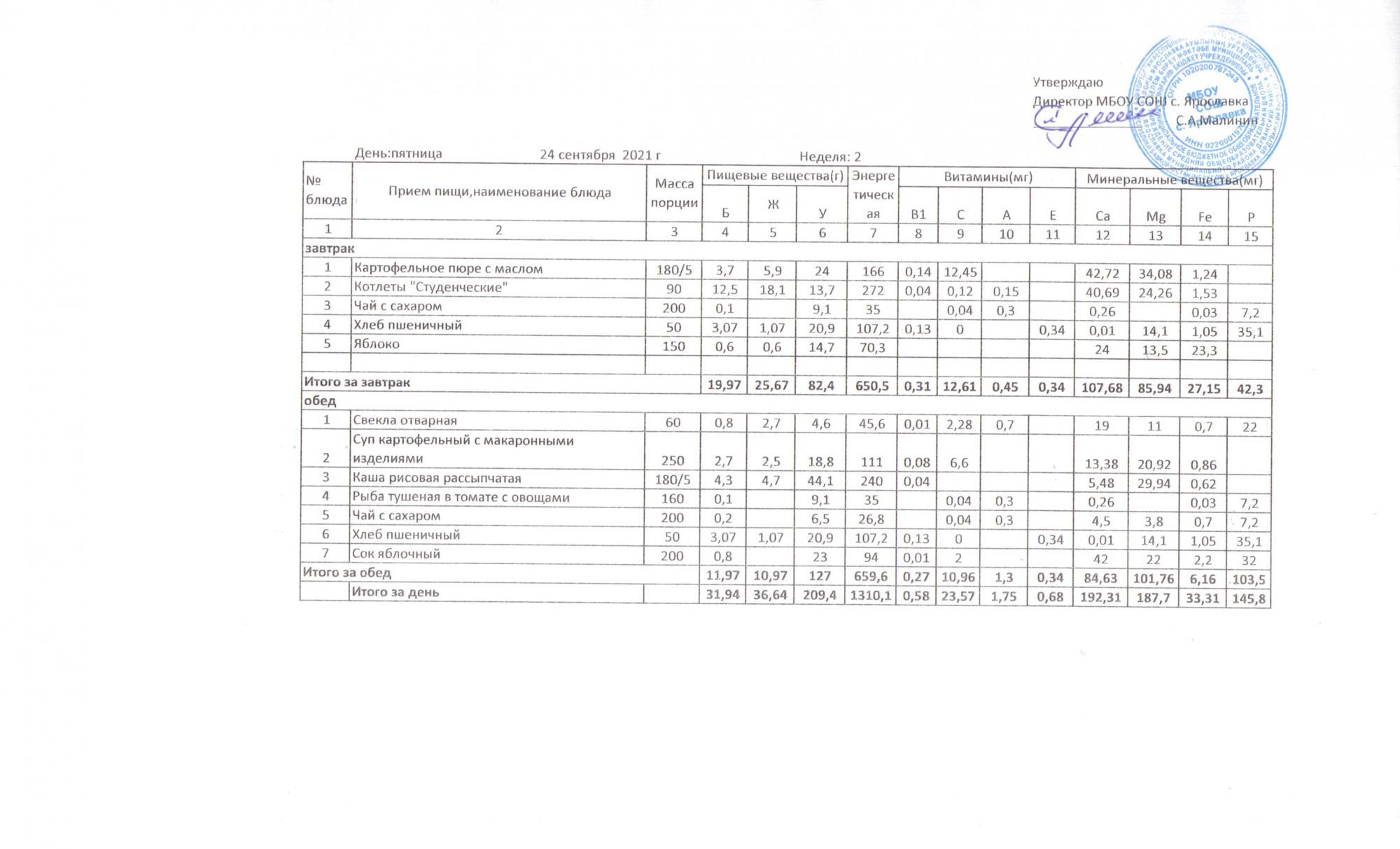 Утвержденные 10-дневные меню