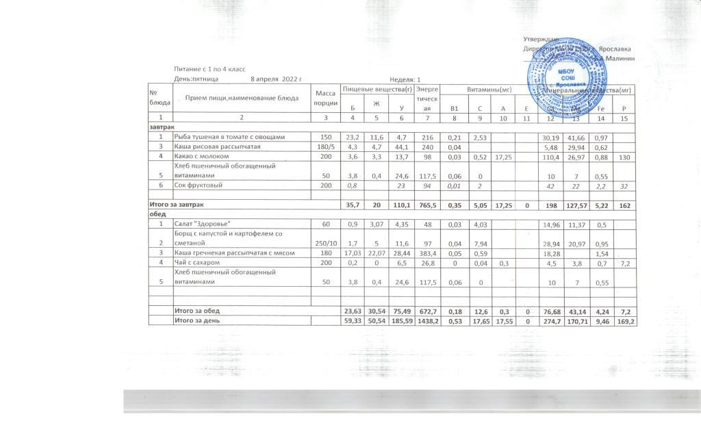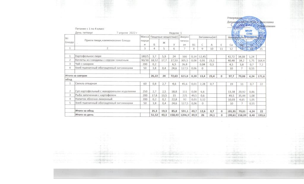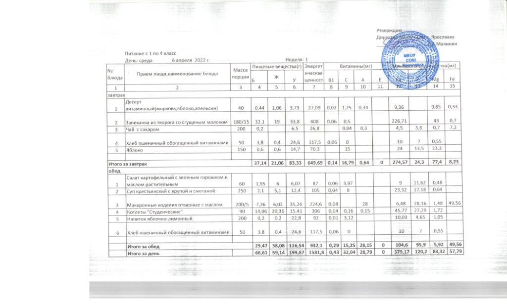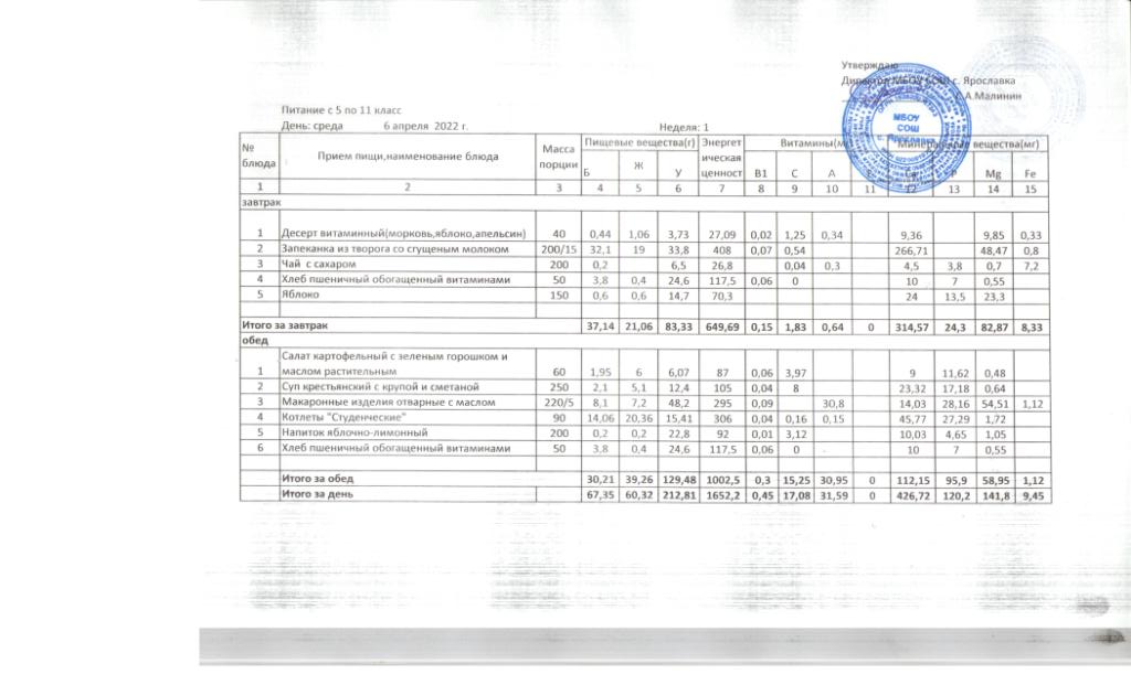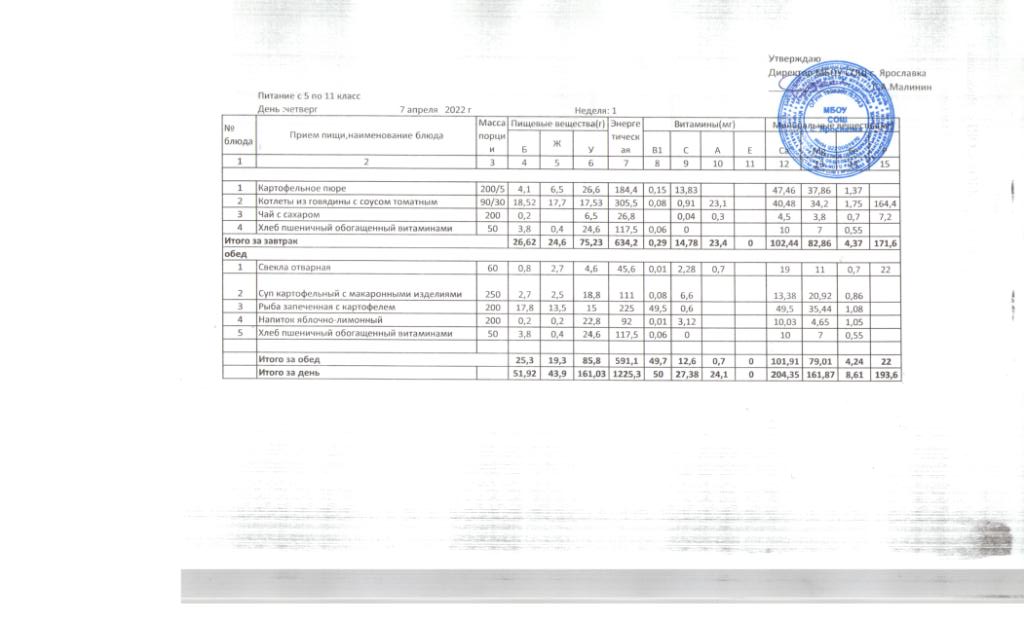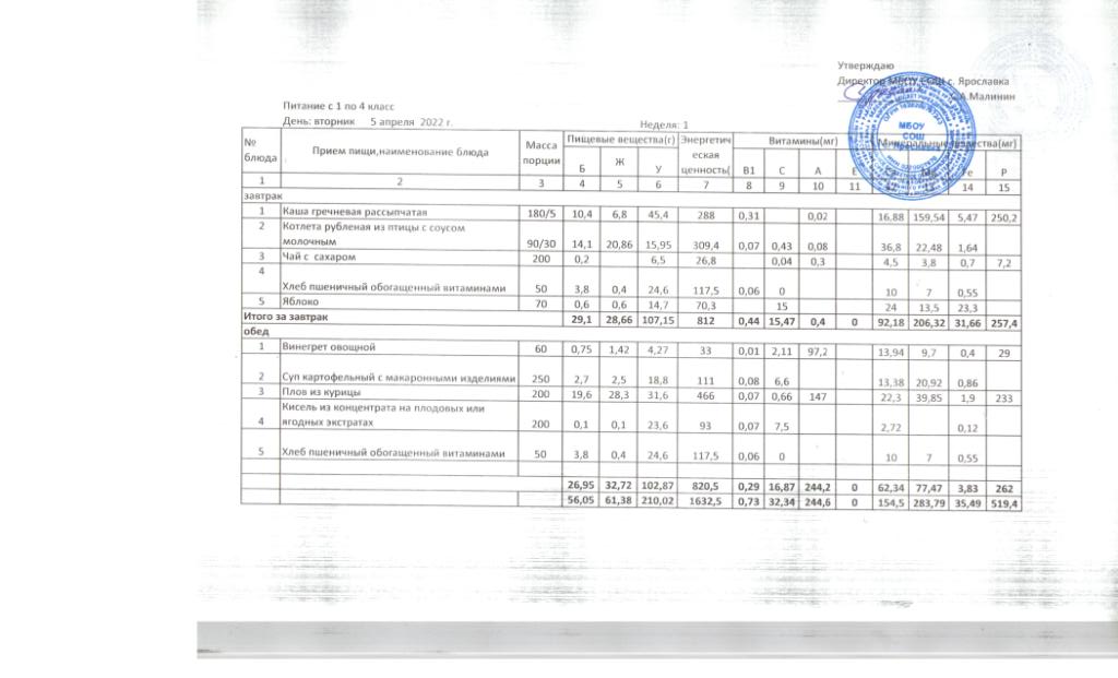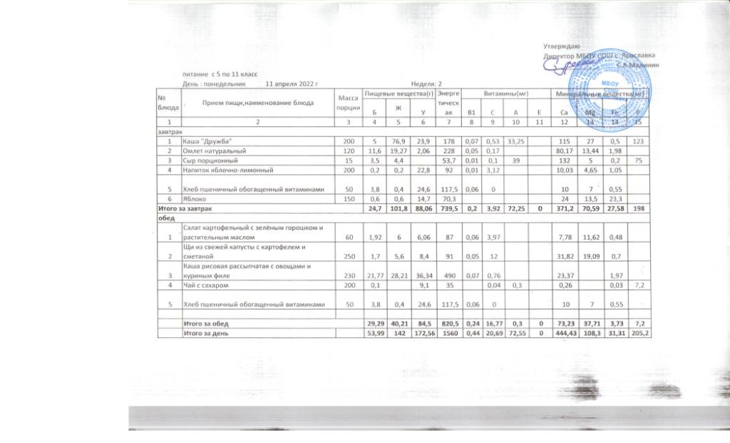 Утвержденные 10-дневные меню