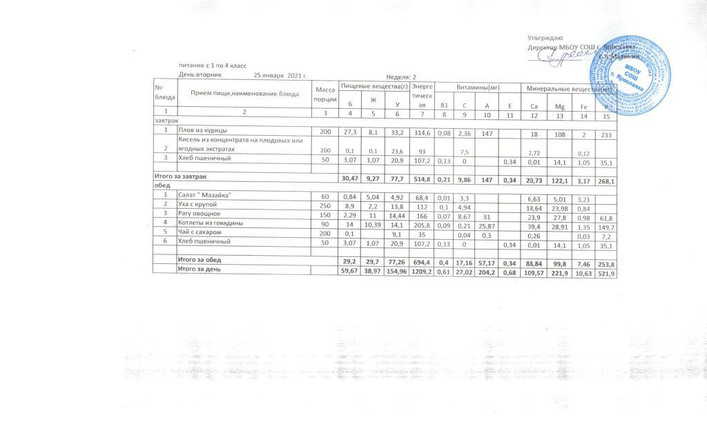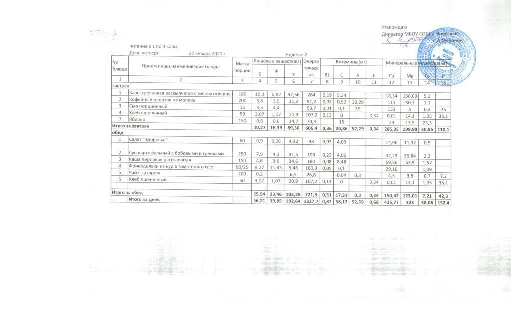 Выписка из основной образовательной программы НОО МБОУ СОШ с.Ярославка