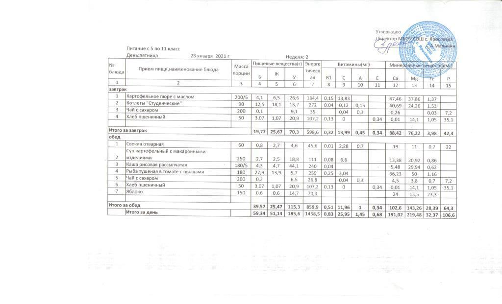 Выписка из образовательной программы основного общего и среднего общего образования МБОУ СОШ с.Ярославка
