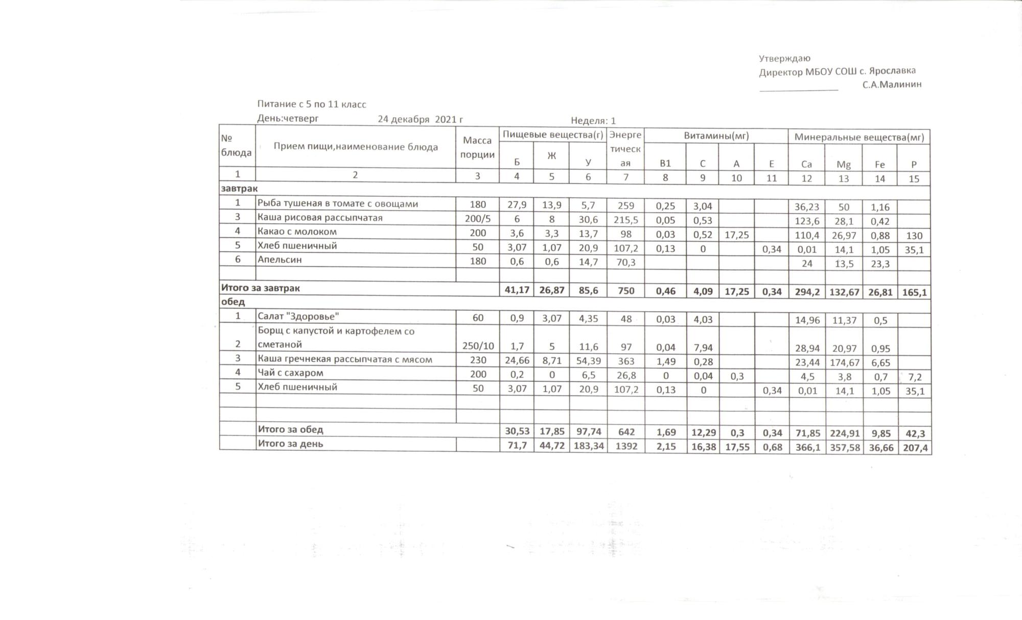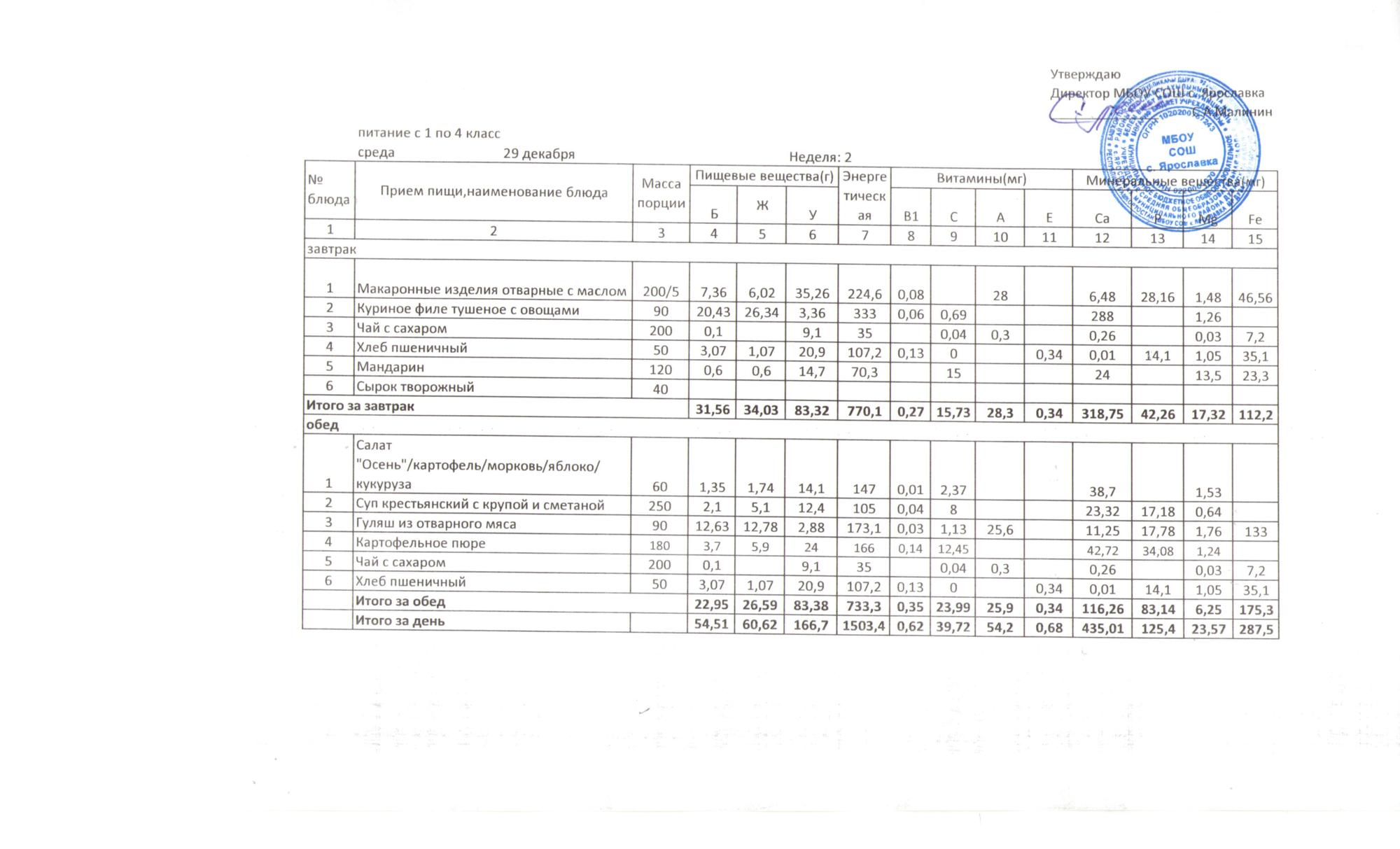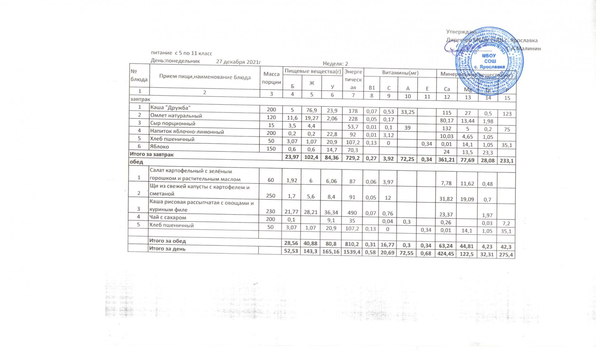 Утвержденные 10-дневные меню