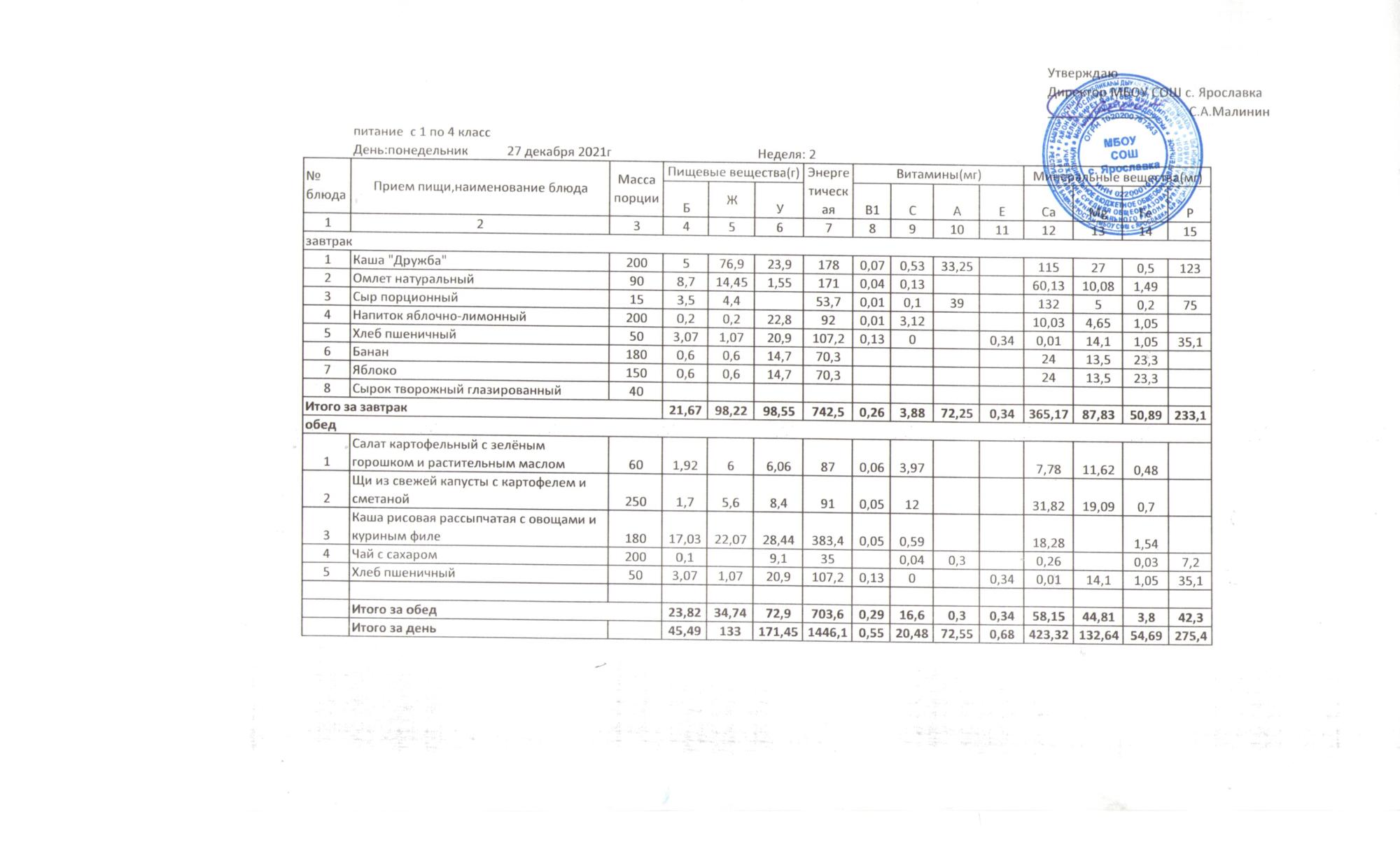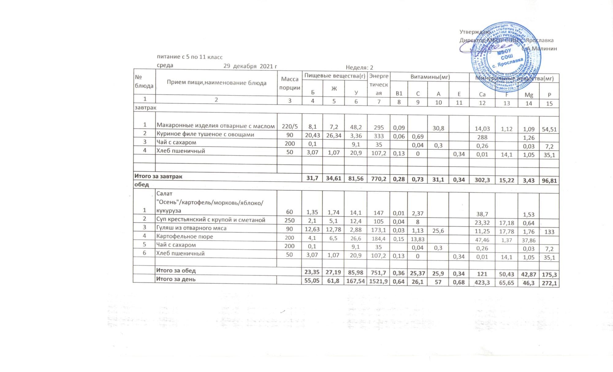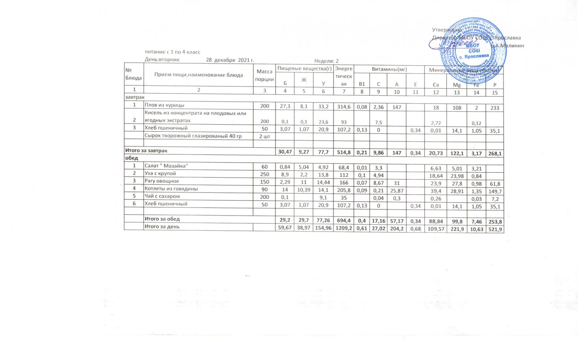 Утвержденные 10-дневные меню