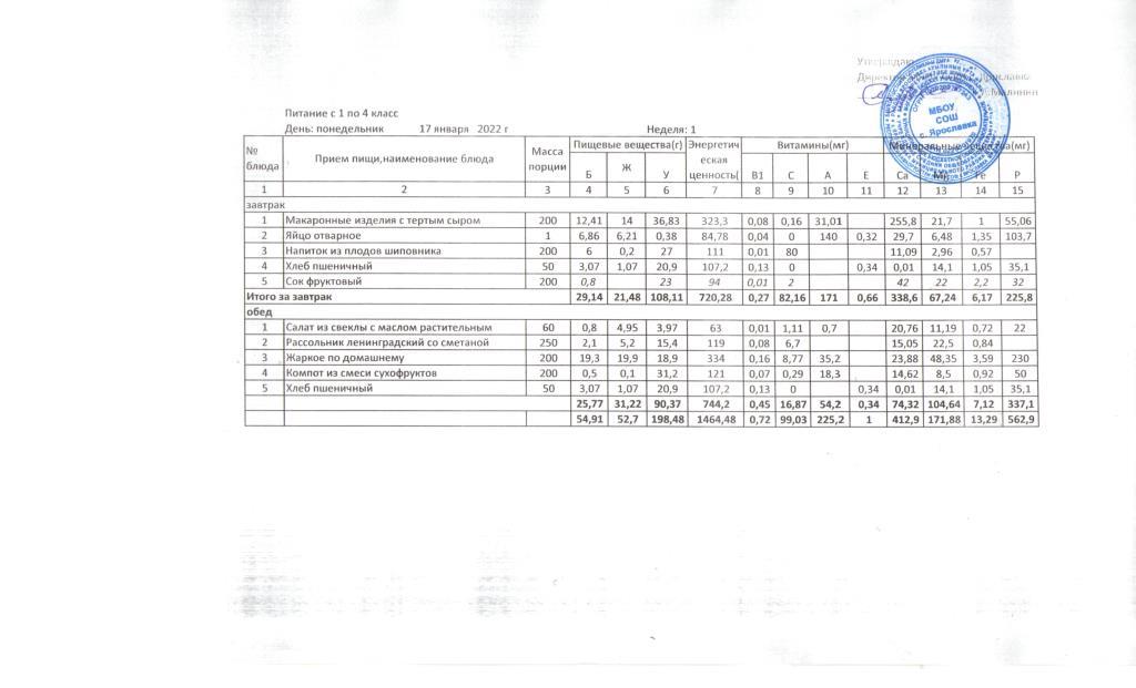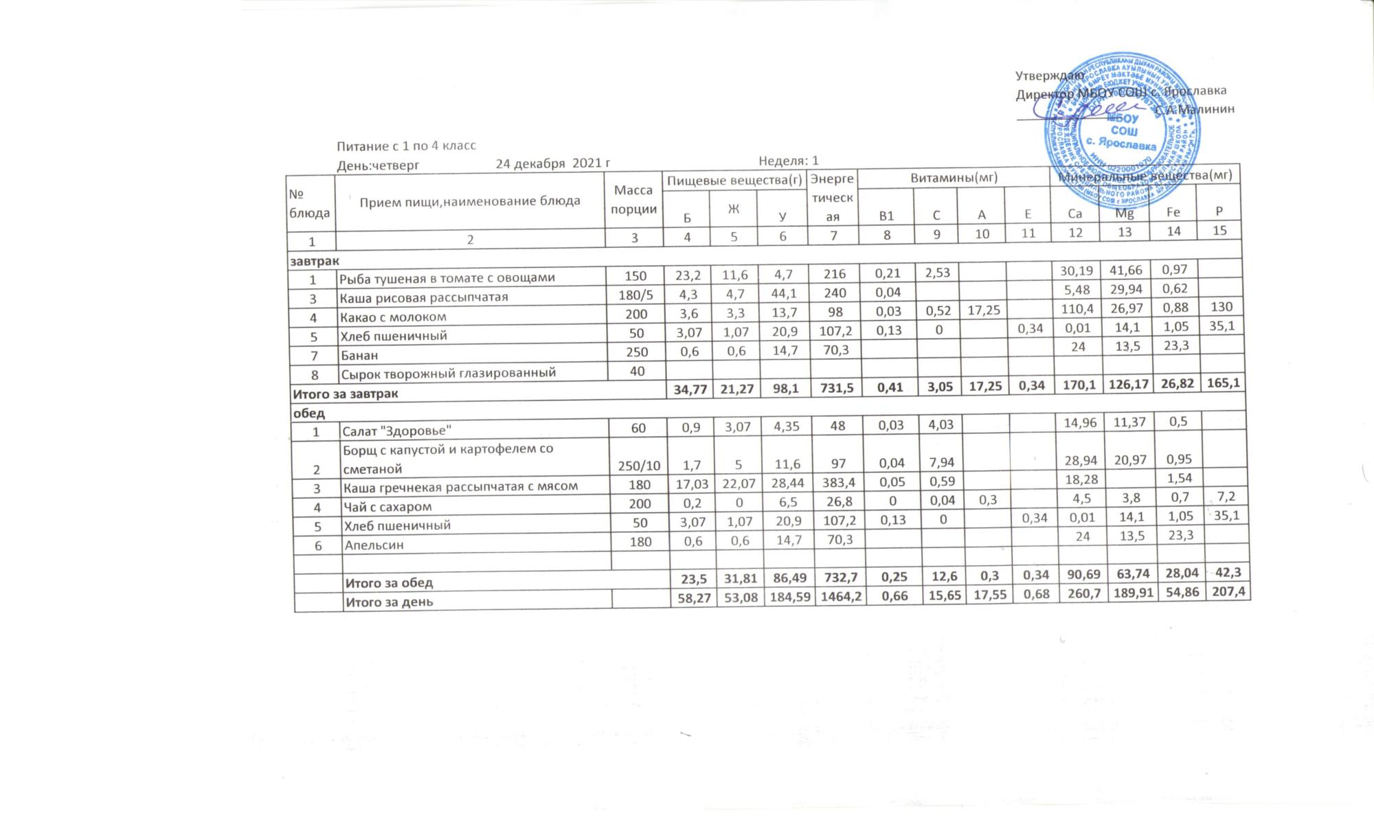 (Меню 1-4 кл.)