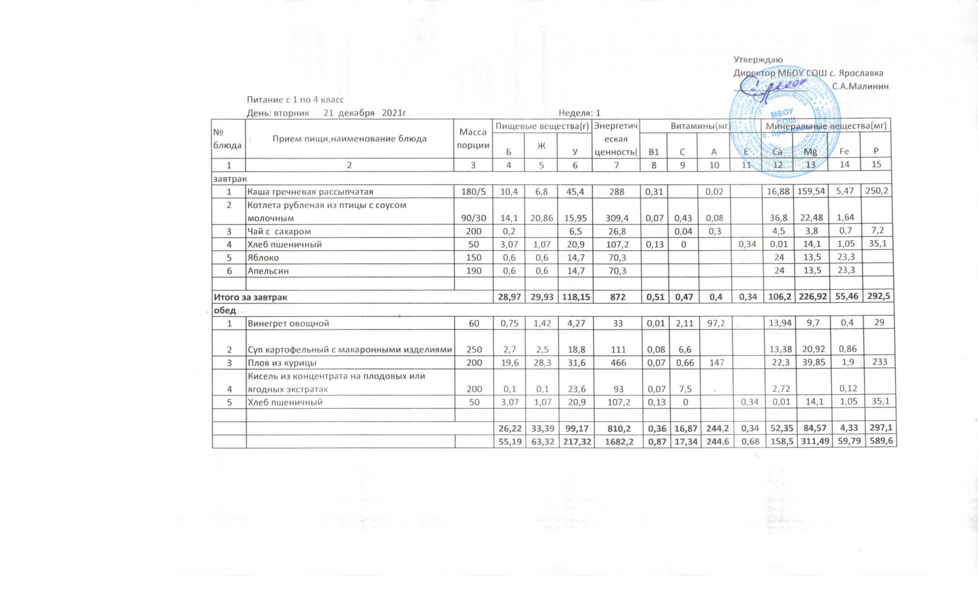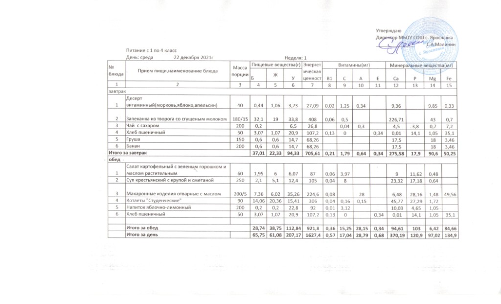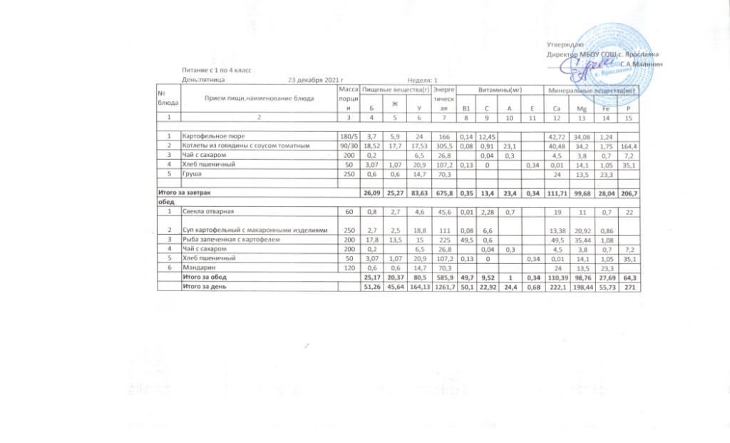 Выписка из основной образовательной программы НОО МБОУ СОШ с.Ярославка