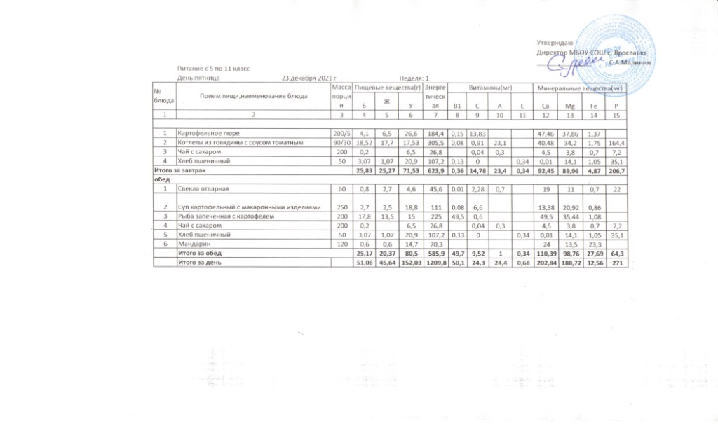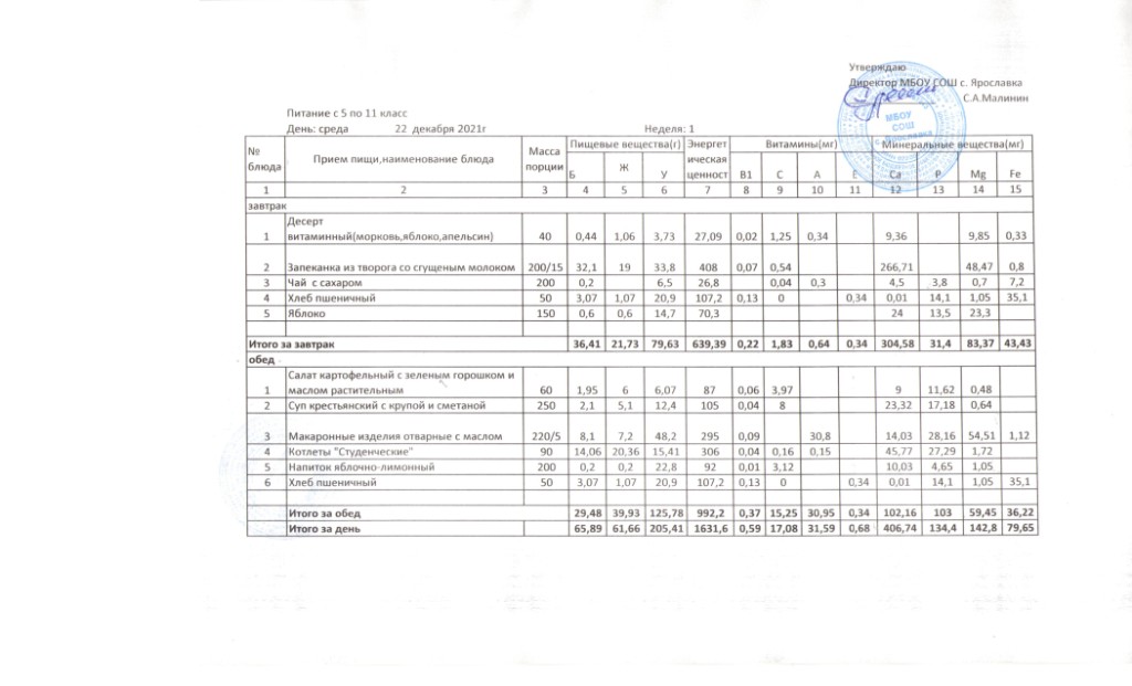 Выписка из образовательной программы основного общего и среднего общего образования МБОУ СОШ с.Ярославка