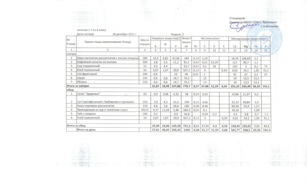 (Меню 1-4 кл.)