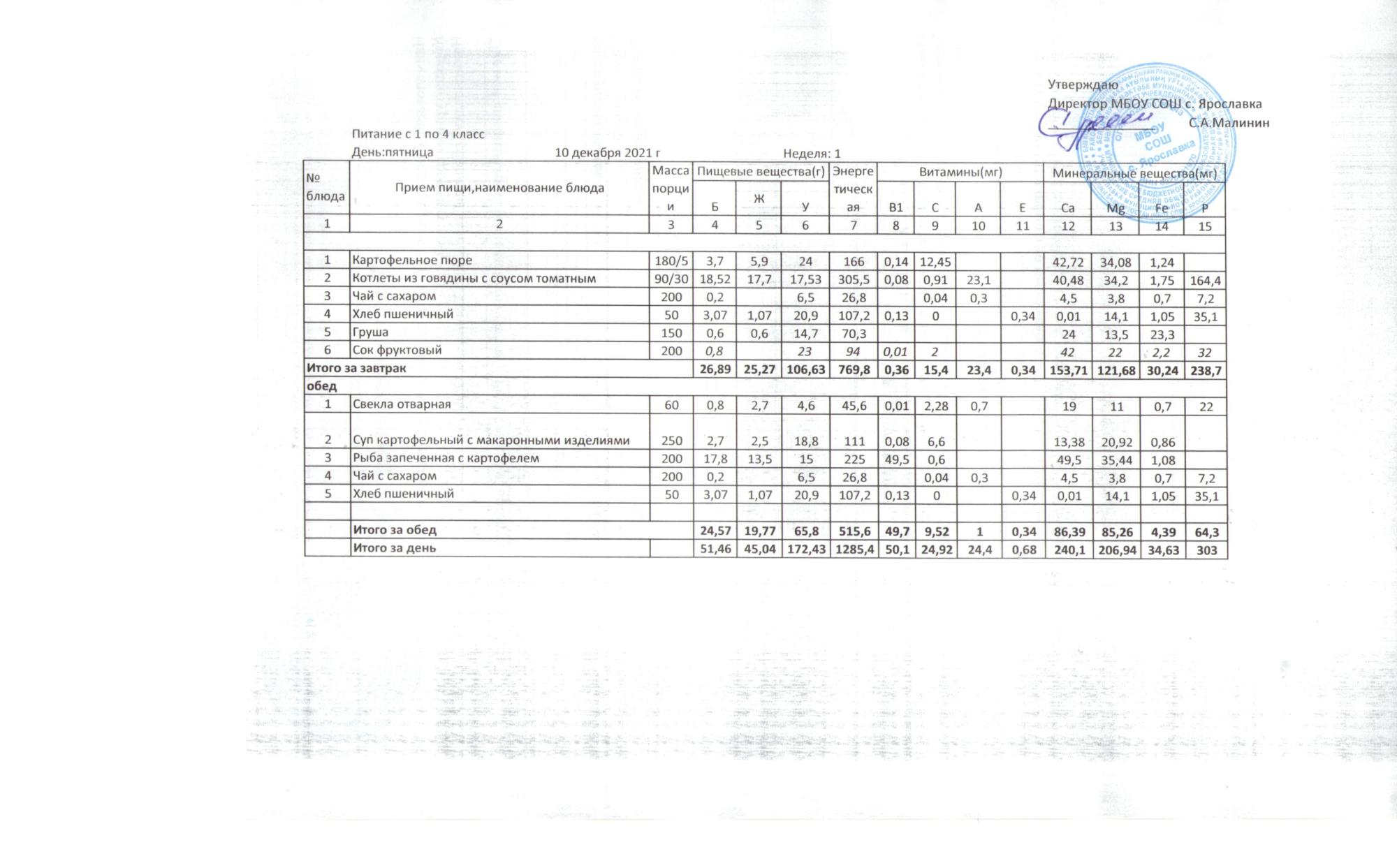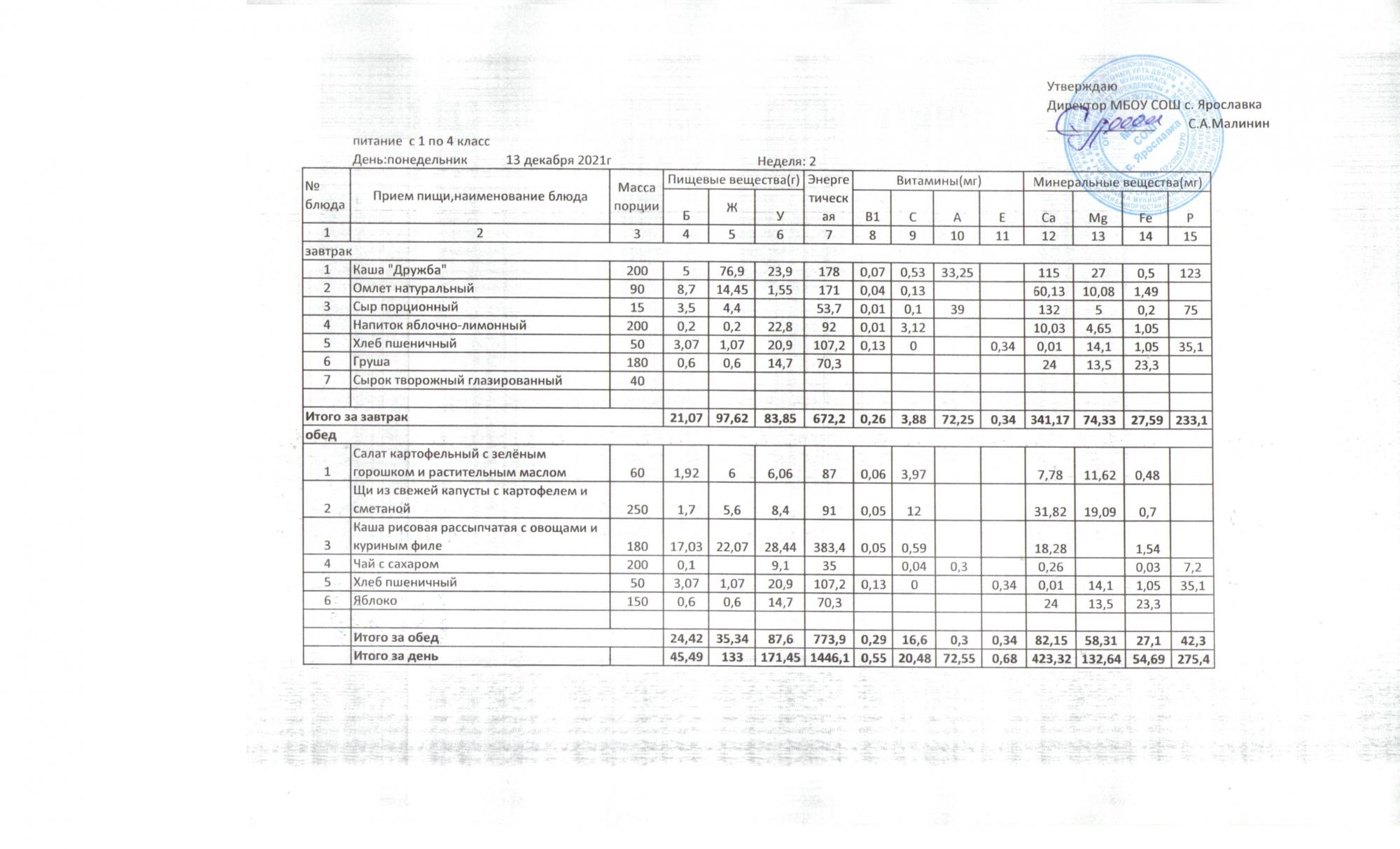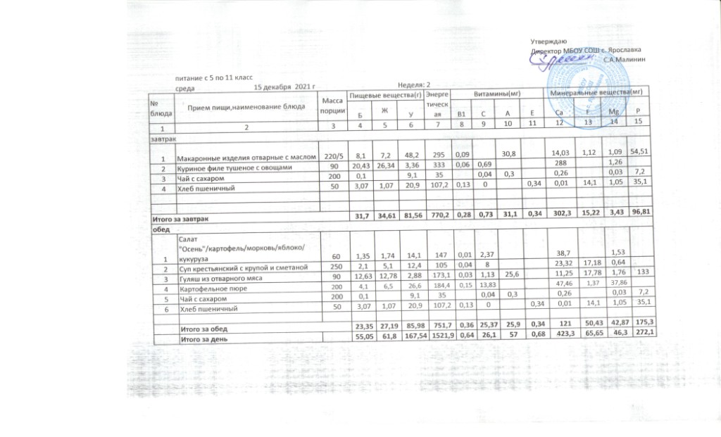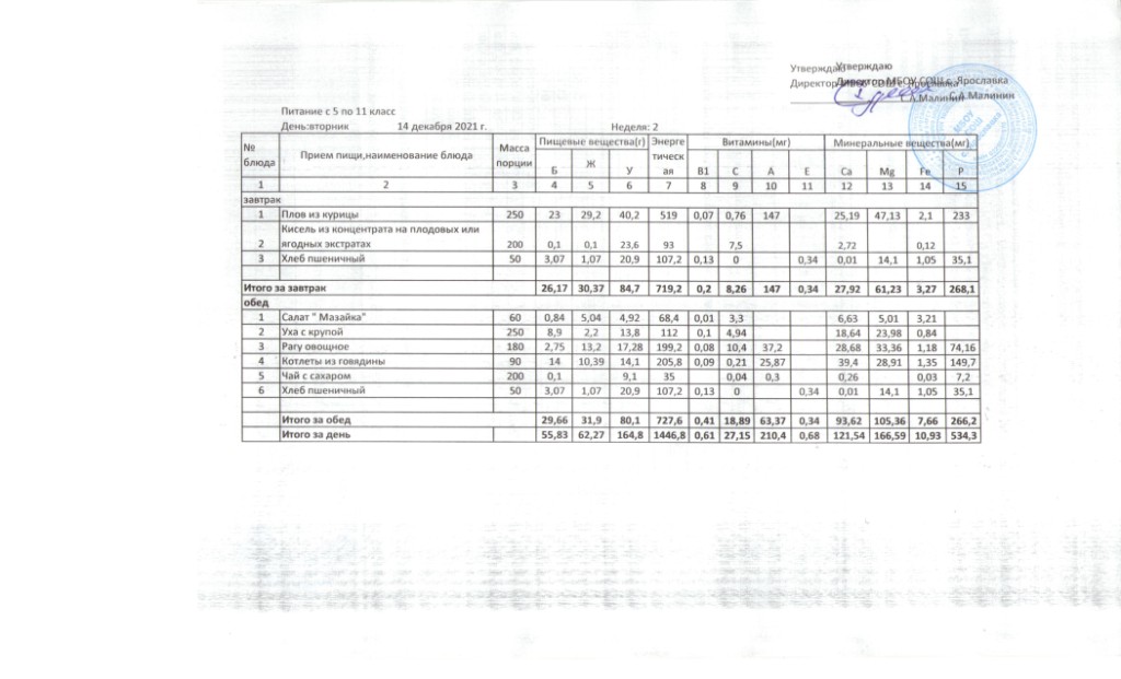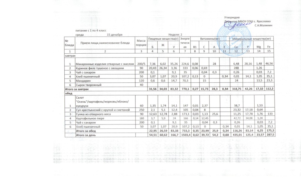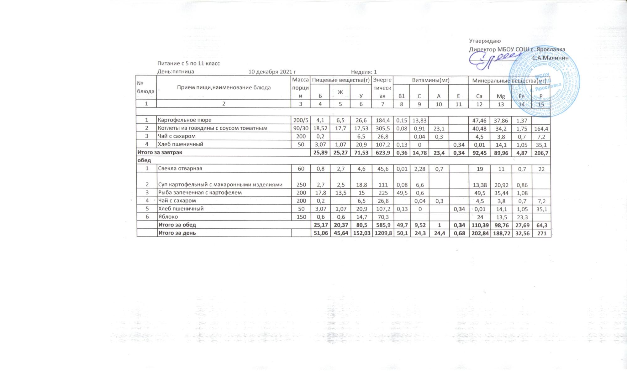 Утвержденные 10-дневные меню