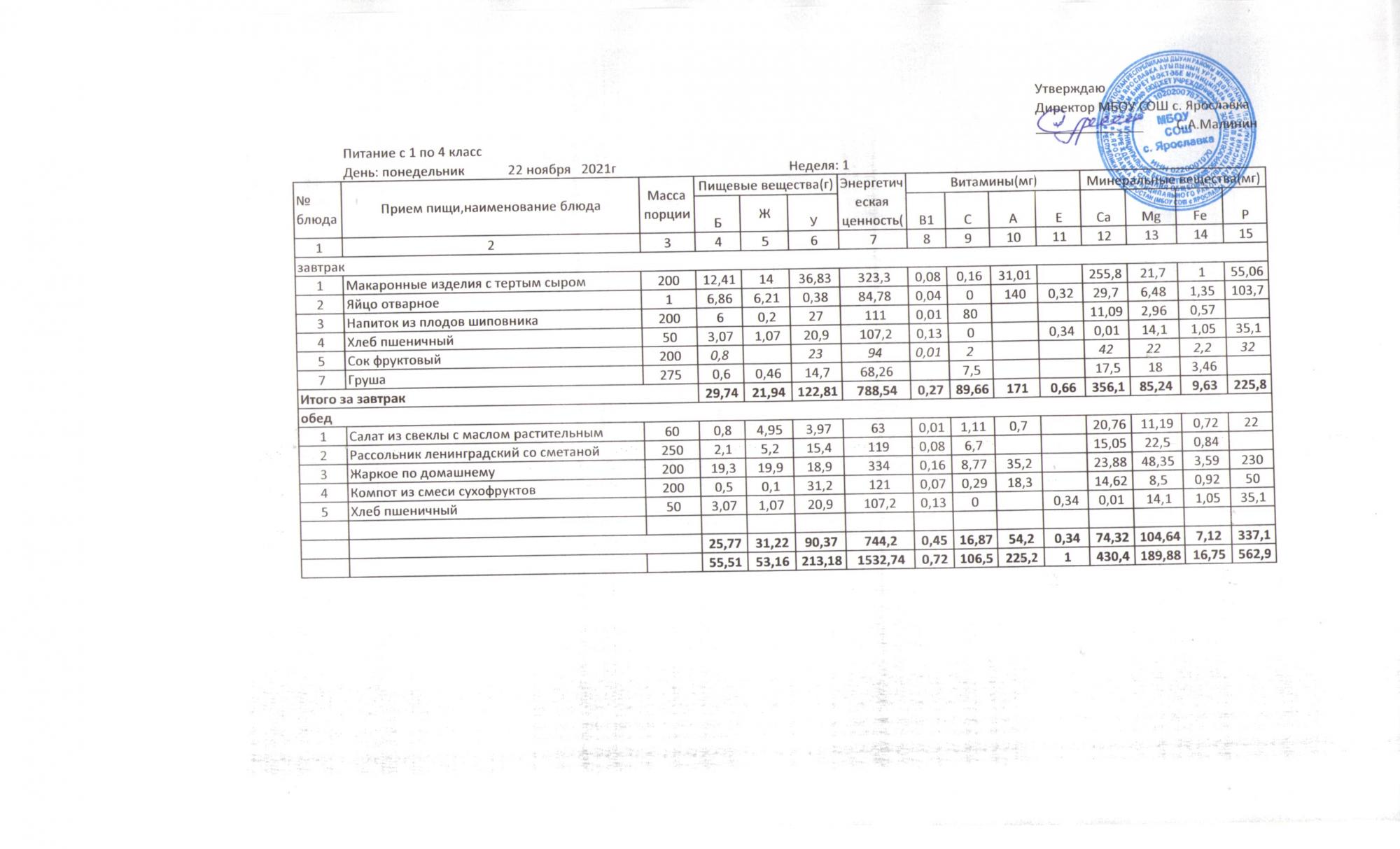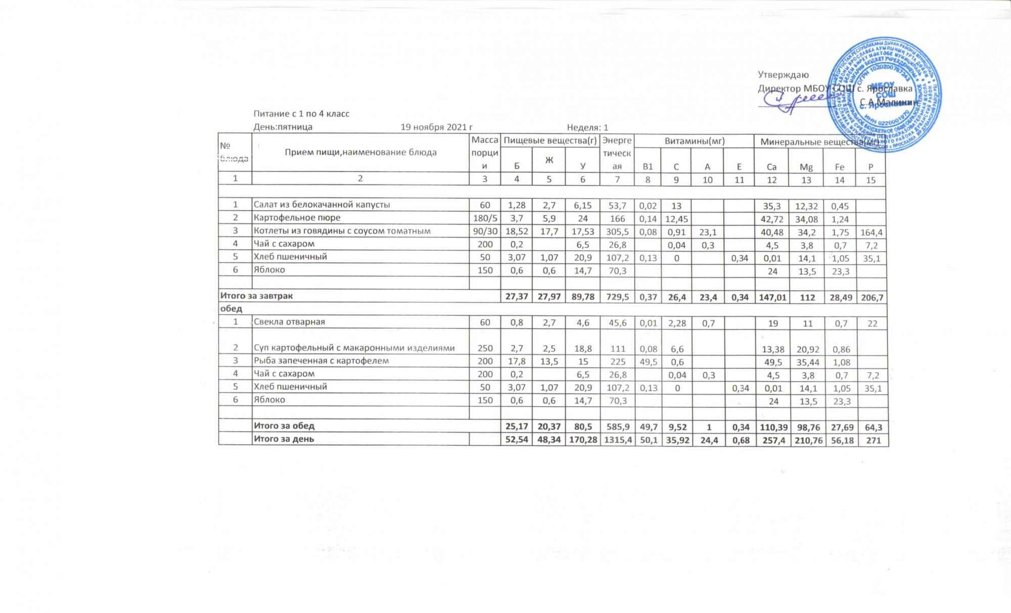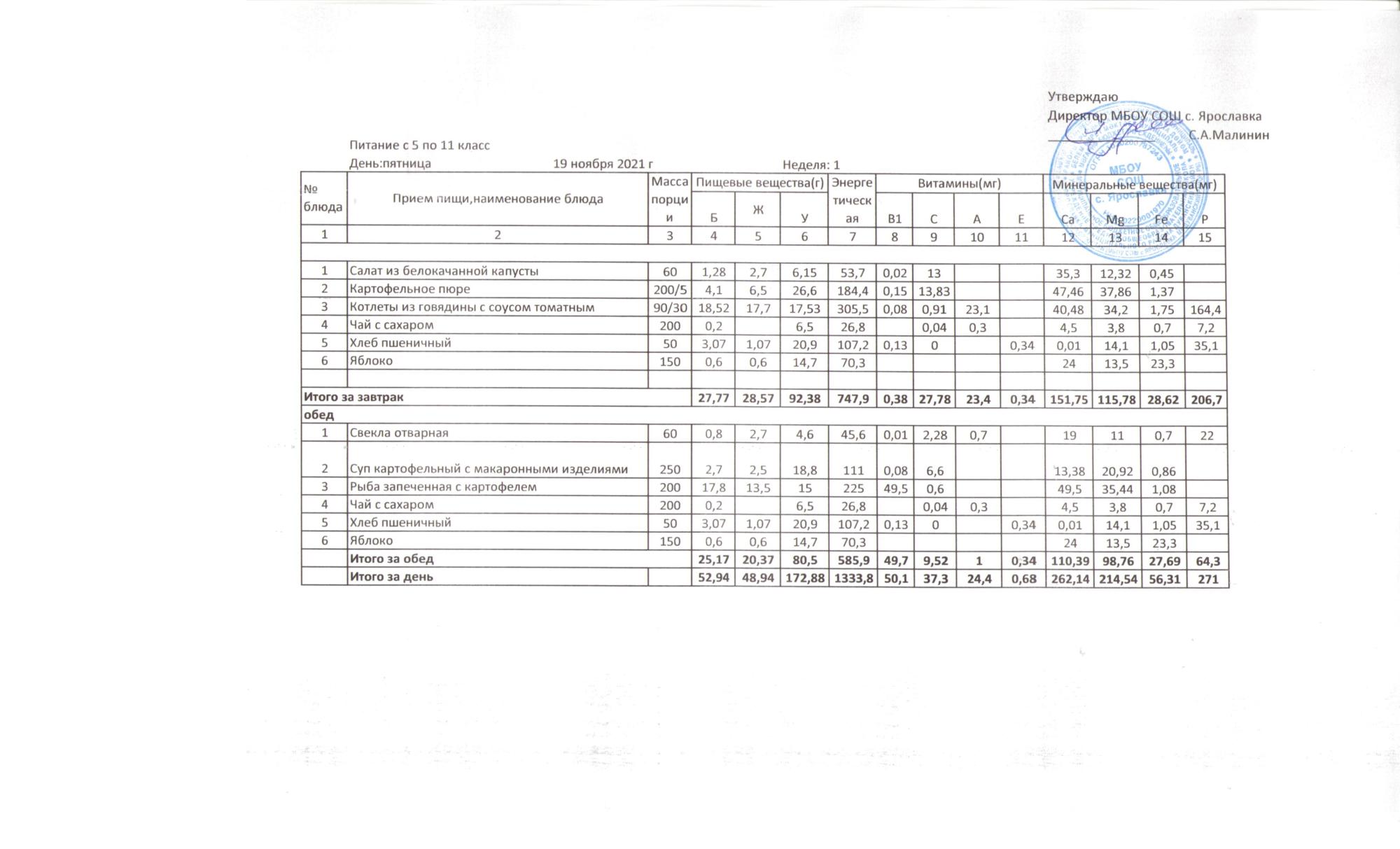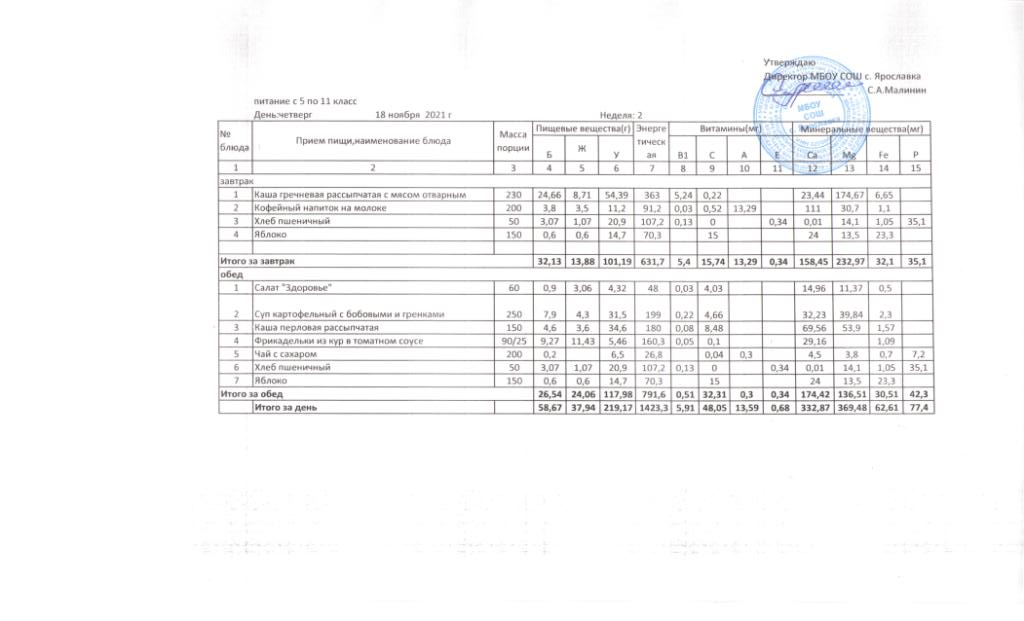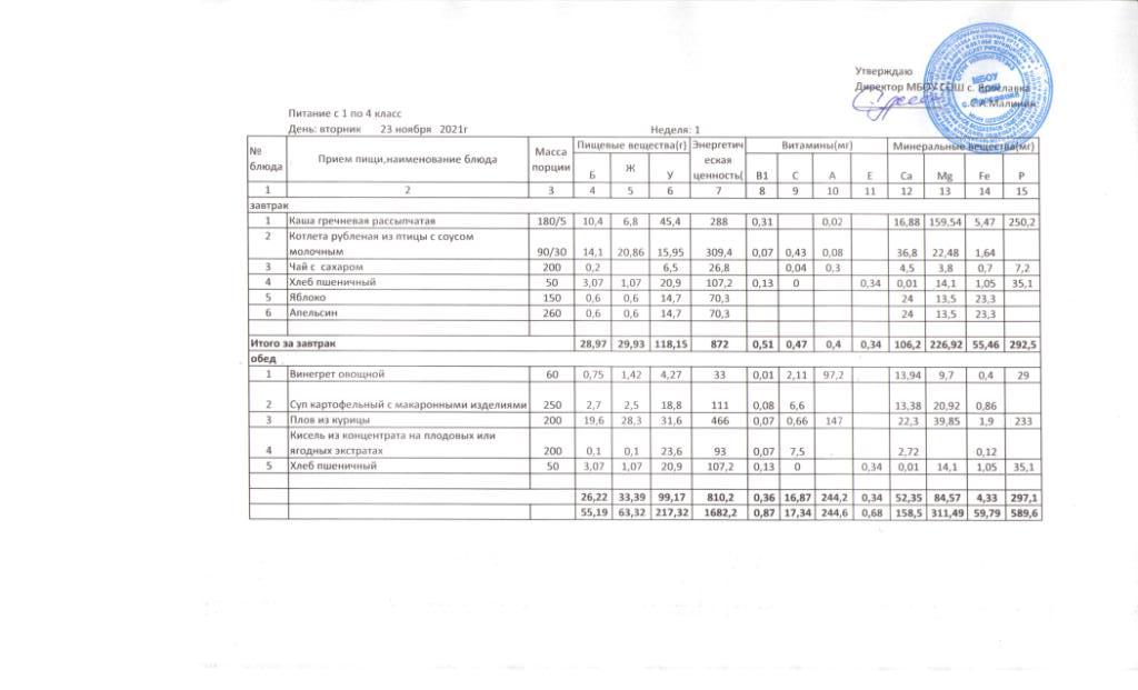 Утвержденные 10-дневные меню