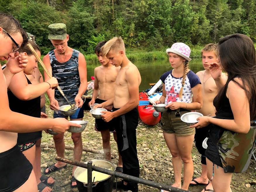 Четыре дня ребята сплавлялись по реке Ай на катамаранах и плотах. Они осваивали различные виды туристического мастерства, греблю. Дух товарищества проявлялся в учениках, ведь каждый вечер они ставили палатки, разводили костер, пели песни под звуки гитары. Некоторые учащиеся открыли для себя новый вид деятельности - рыбалку. Вы просто не представляете, какую вкусную уху в итоге получали школьники. Еда на костре, по сути, самая вкусная, а чай на травах...